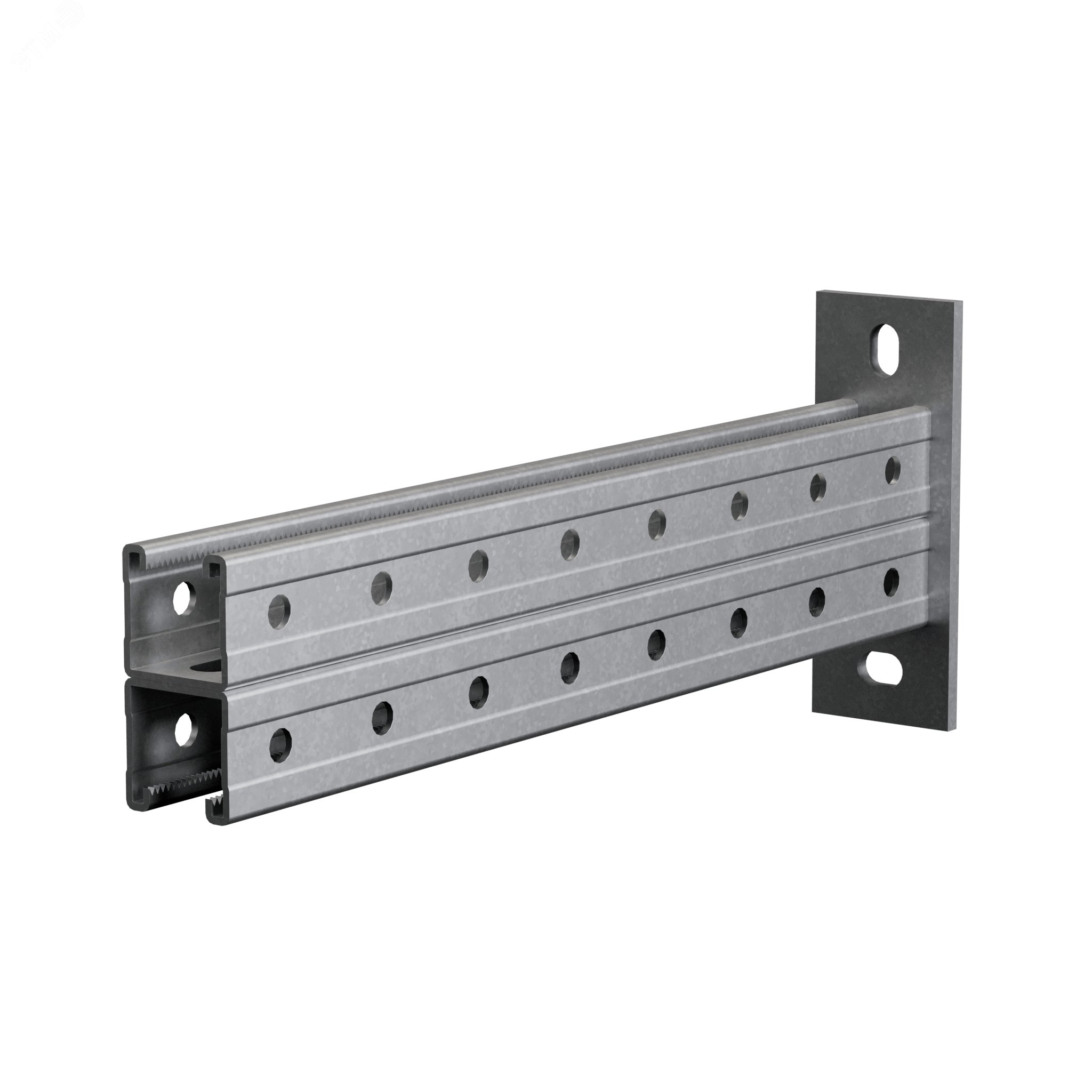 Элемент разработан для формирования опорных конструкций и узлов креплений на основе страт-профиля. Страт-консоль двойная усиленная применяется для фиксации кабельной трассы к вертикальным поверхностям, а также для создания опорных конструкций. Крепление изделия производится к стене, в профили и к стойкам при помощи крепёжных элементов. Представляет собой цельное изделие, готовое к использованию и не требующее предварительной сборки. Устанавливается без применения сварки. Оцинковано методом горячего погружения согласно ГОСТ 9.307-89 и используется для монтажа в помещениях с высокой влажностью и низкой загрязненностью, под открытым небом и в слабокоррозийной среде, в соответствии с ГОСТ 15150-69.