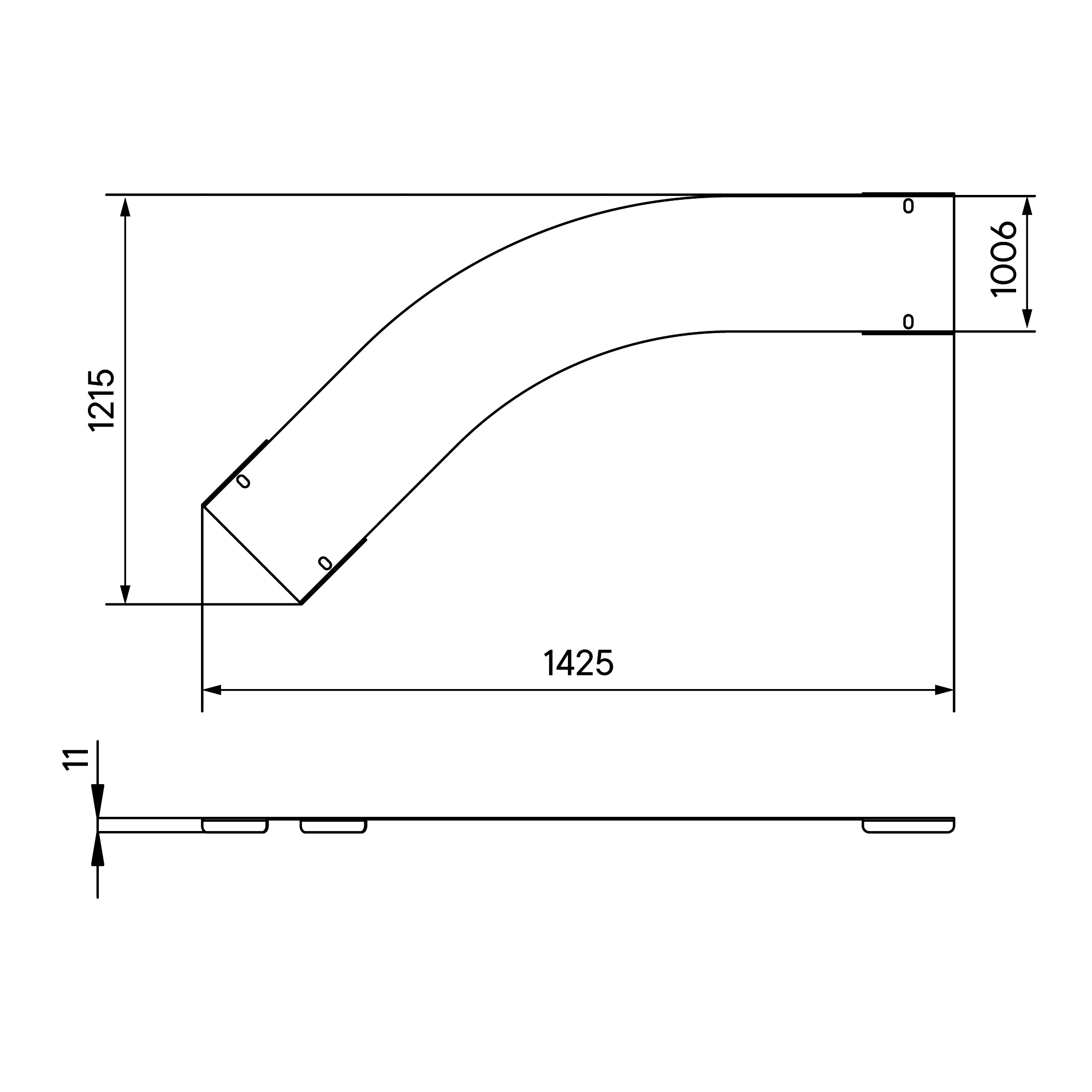 Крышка на угол горизонтальный 45 градусов 1000, R600, 1,0 мм, нержавеющая сталь AISI 304