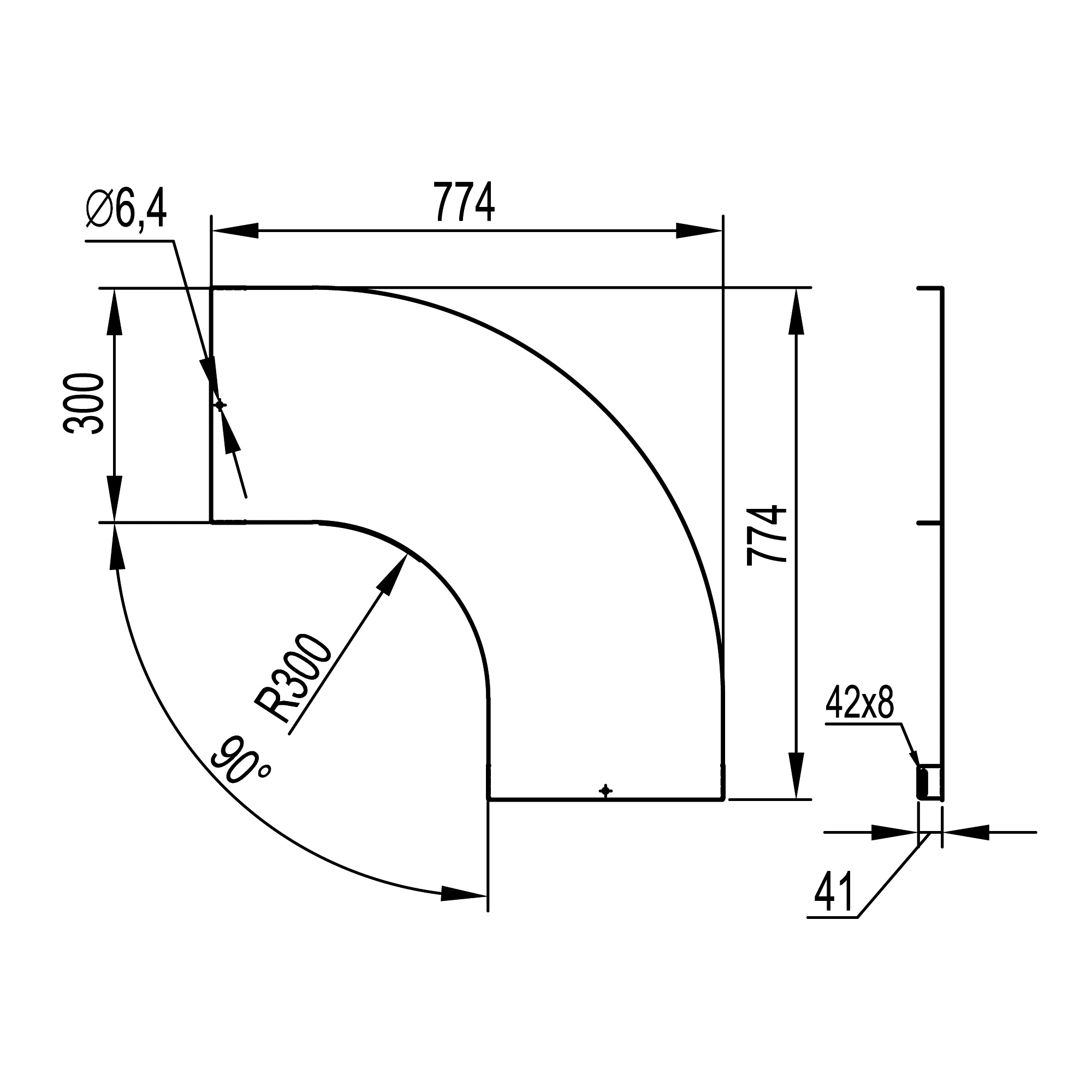 Крышка на угол горизонтальный 90 градусов, осн.300, R=300мм в комплекте с крепежными элементами и соединительными пластинами, необходимыми для монтажа