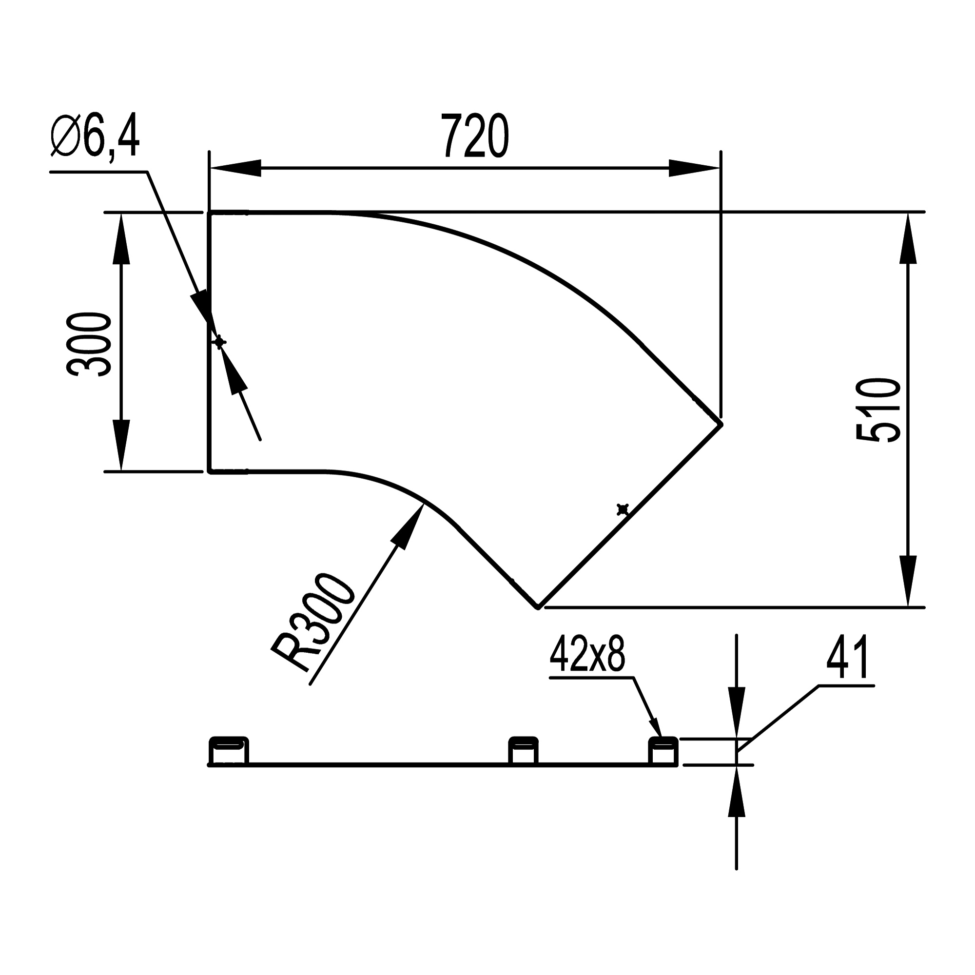 Крышка на угол горизонтальный 45?, осн.300, R-300, горячеоцинкованная в комплекте с крепежными элементами и соединительными пластинами, необходимыми для монтажа