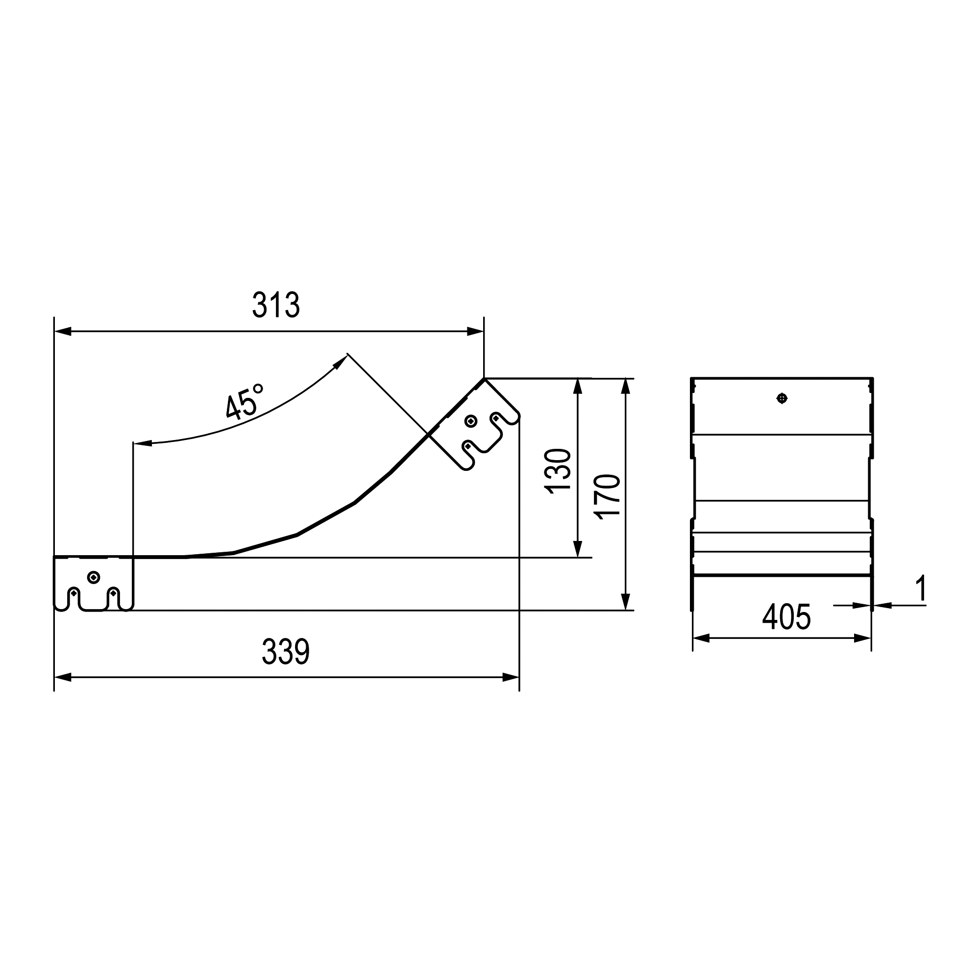 Крышка на угол вертикальный внутренний 45 градусов, 100х400 R900, горячеоцинкованная в комплекте с крепежными элементами исоединительными пластинами, необходимыми для монтажа