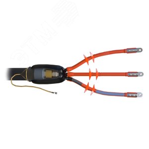 Муфта предназначена для оконцевания трехжильного кабеля с броней с изоляцией из сшитого полиэтилена и экраном из медных проволок на напряжение до 10кВ для наружной установки. В составе муфты применяются трубки стресс-контроля снижающие риск пробоя изоляции на срезе полупроводящего слоя и спец. герметик со свойствами выравнивания напряженности электрического поля. Использование изолирующей антитрекинговой трубки и изолятора снижает риск пробоя по поверхности изоляции. Термоплавкий клей, нанесенный на внутреннюю поверхность термоусаживаемых трубок, обеспечивает полную герметичность муфты после монтажа. В комплект муфты входят алюминиевые наконечники с контактными винтами со срывающимися головками. Для улучшения электропроводящих свойств на контакт. поверхности болтов нанесена специальная смазка. Болтовые наконечники предусмотрены для монтажа как на алюминиевую, так и на медную жилы.