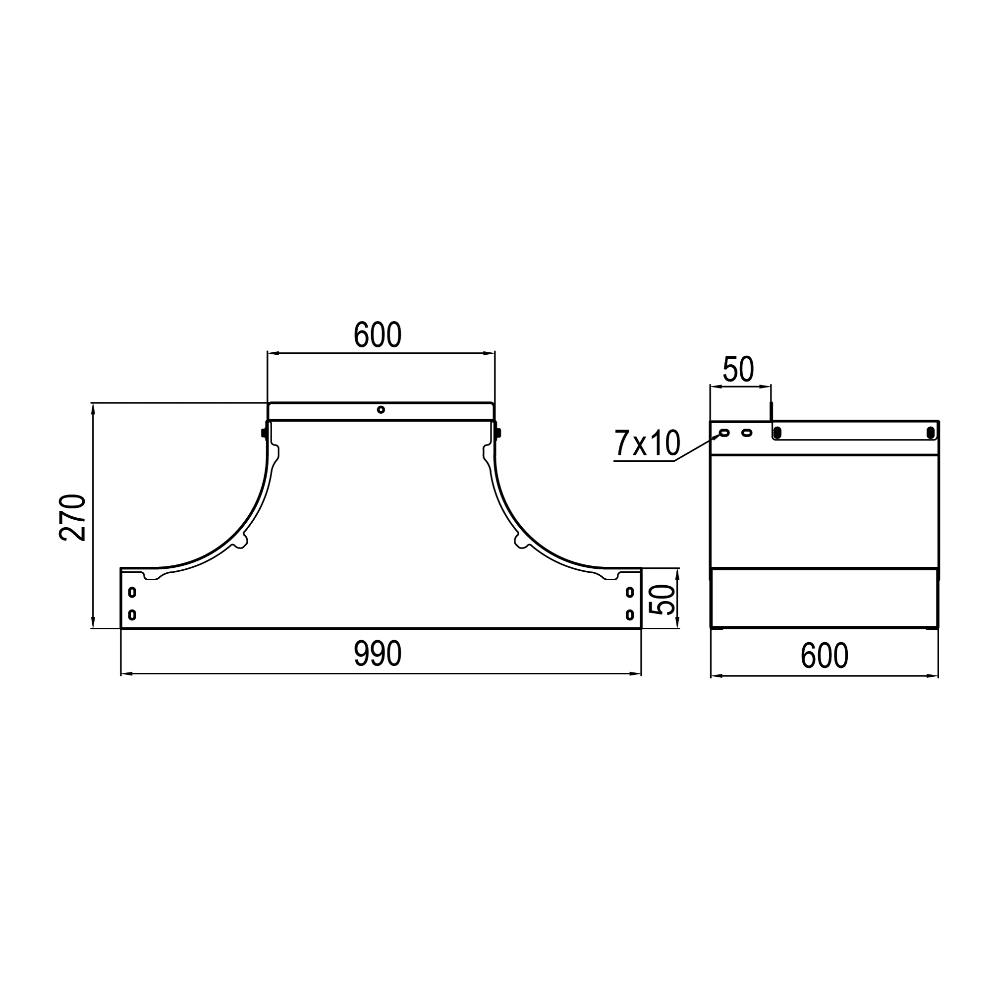 Т-Ответвитель вверх TSS осн.600 H50, нержавеющая сталь AISI 304, в комплекте с крепежными элементами и соединительными пластинами, необходимыми для монтажа