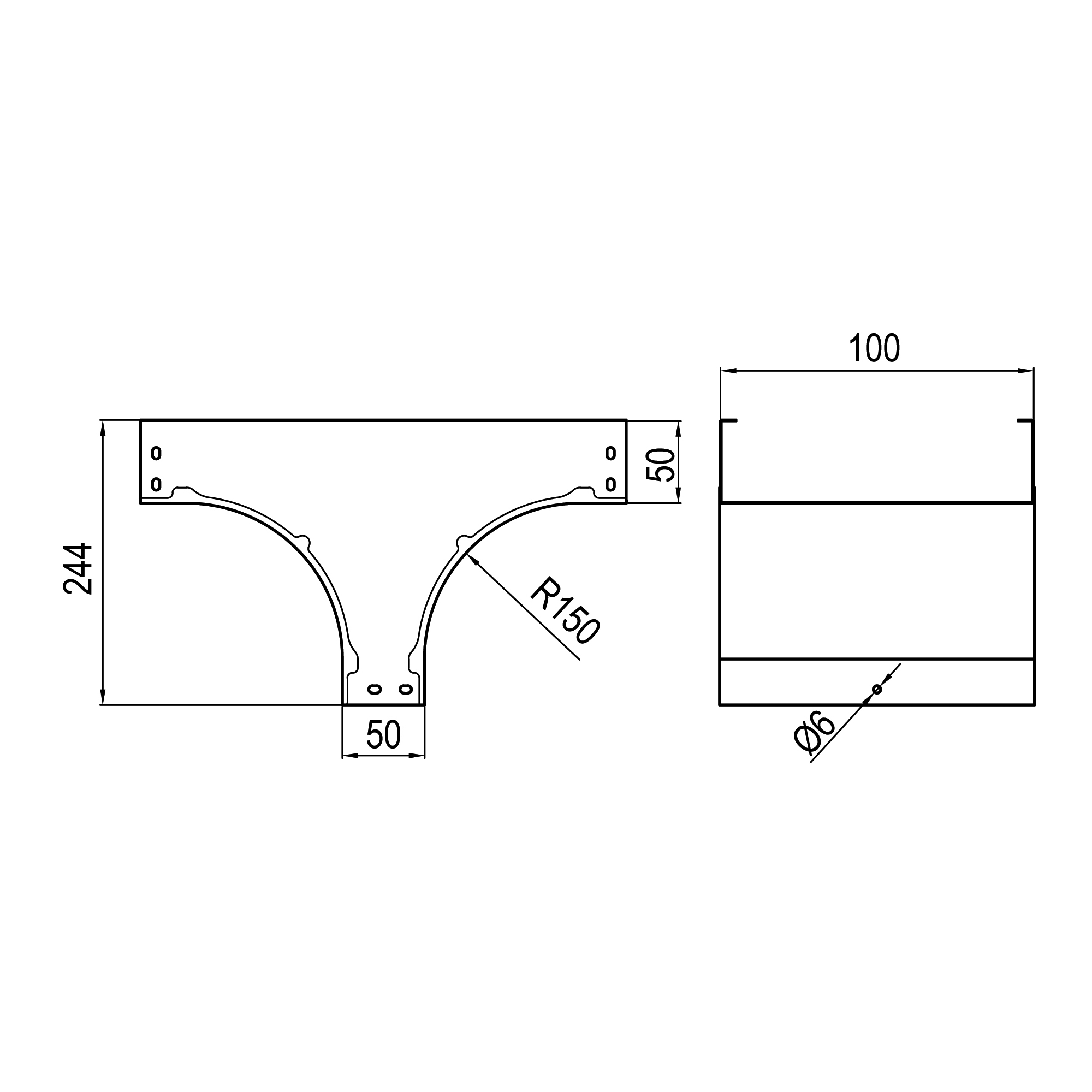 Ответвитель TD Т-образный вертикальный осн.100 H50, нержавеющая сталь AISI 304, в комплекте с крепежными элементами и соединительными пластинами, необходимыми для монтажа