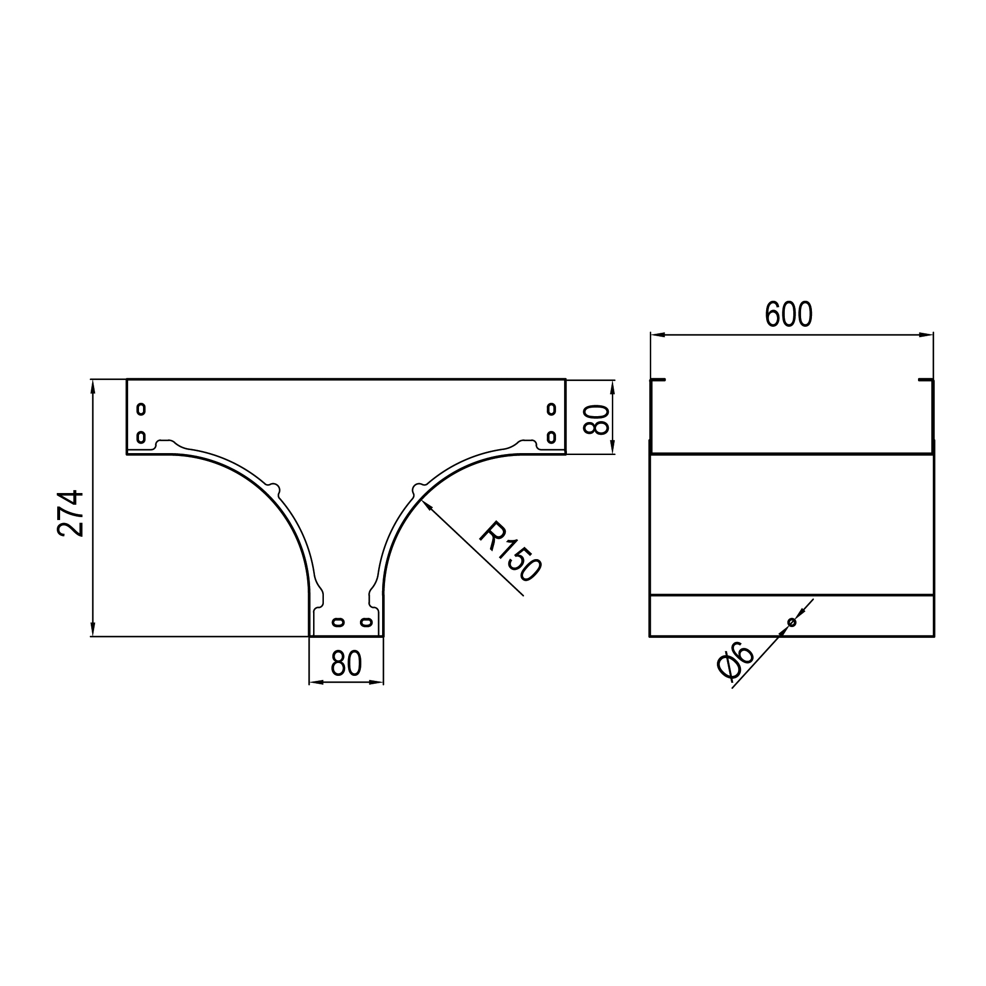 Ответвитель TD Т-образный вертикальный осн.600, нержавеющая сталь AISI 304, в комплекте с крепежными элементами и соединительными пластинами, необходимыми для монтажа
