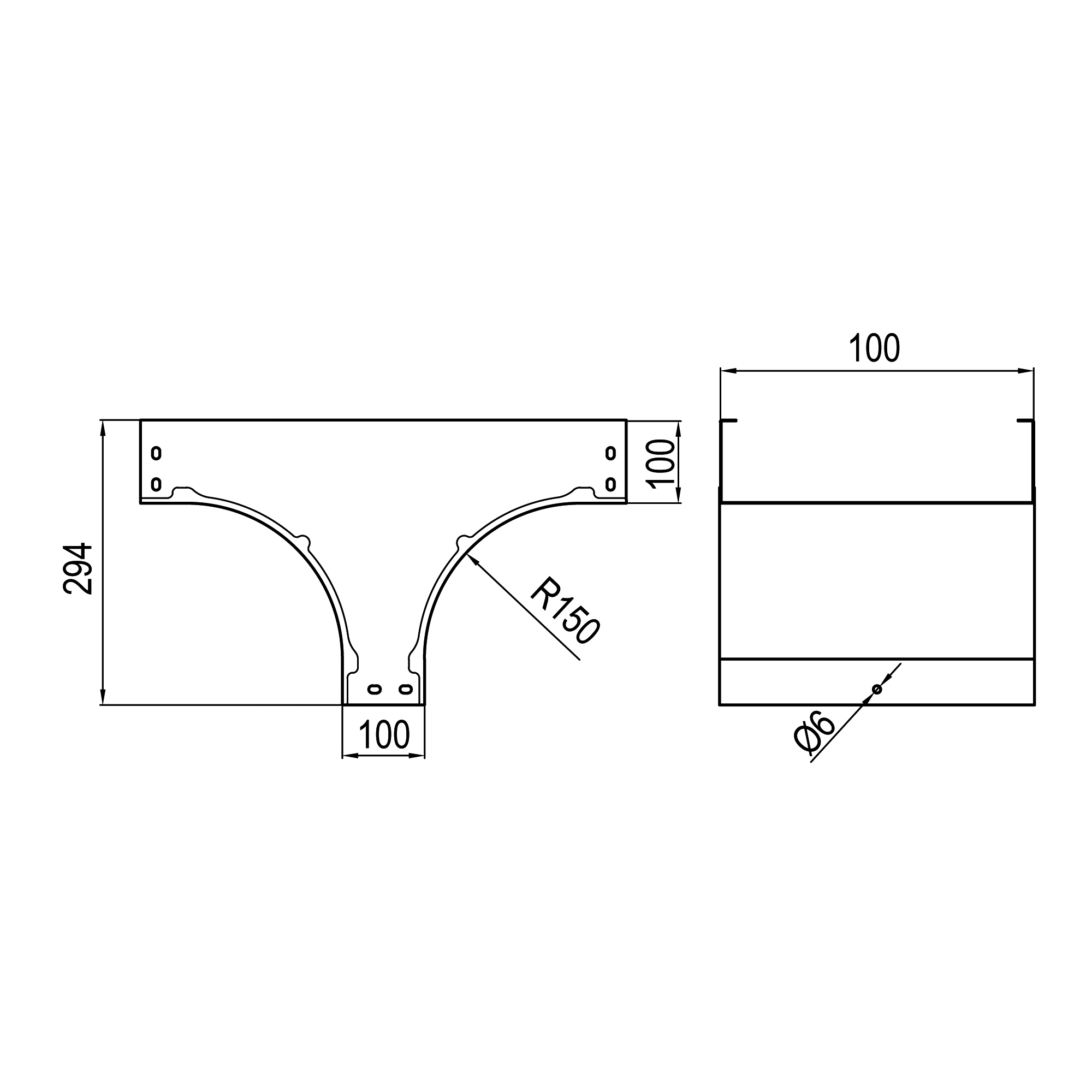 Ответвитель TD Т-образный вертикальный осн.100 H100, нержавеющая сталь AISI 304, в комплекте с крепежными элементами и соединительными пластинами, необходимыми для монтажа