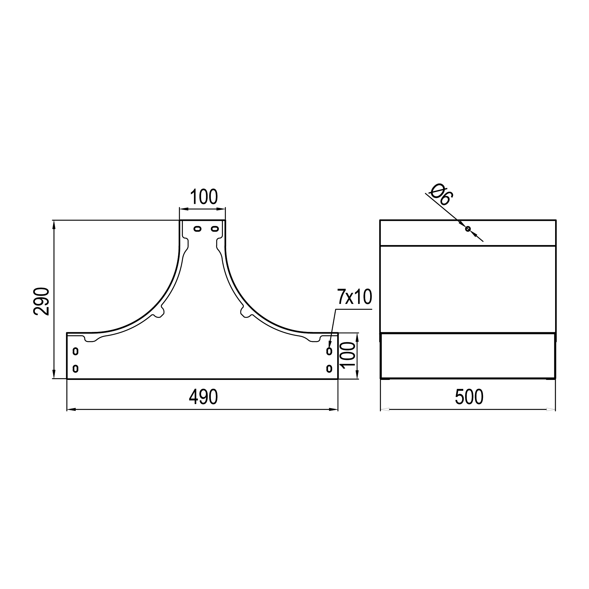 Т-Ответвитель вверх TS осн.500 H100, нержавеющая сталь AISI 304, в комплекте с крепежными элементами и соединительными пластинами, необходимыми для монтажа