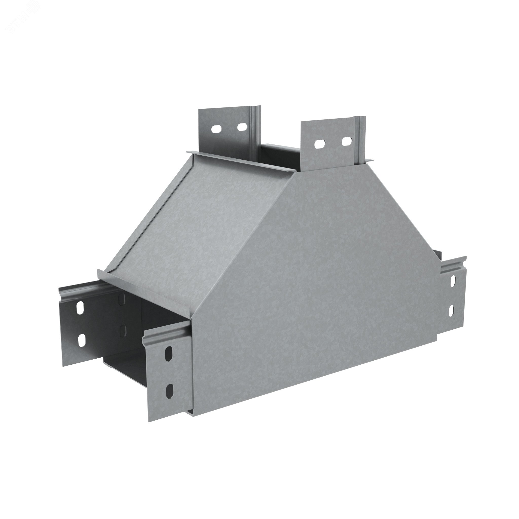 Т-отвод вертикальный вверх серии ''PLUS'' позволяет придерживаться заданных радиусов изгиба кабельной трассы при монтаже. Модификация изделия используется для отвода трассы вверх. Элемент рекомендовано применять c металлическим листовым лотком этой же серии шириной 500 мм и высотой борта 100 мм. Изделие оцинковано методом горячего погружения согласно ГОСТ 9.307-89 и используется для монтажа в помещениях с высокой влажностью и низкой загрязненностью, под открытым небом и в слабокоррозийной среде, в соответствии с ГОСТ15150-69. Т-отвод легко монтируется с помощью метизов. Специальные соединительные лепестки на корпусе секции обеспечивают необходимую жёсткость конструкции стыкового узла и целостность трассы.