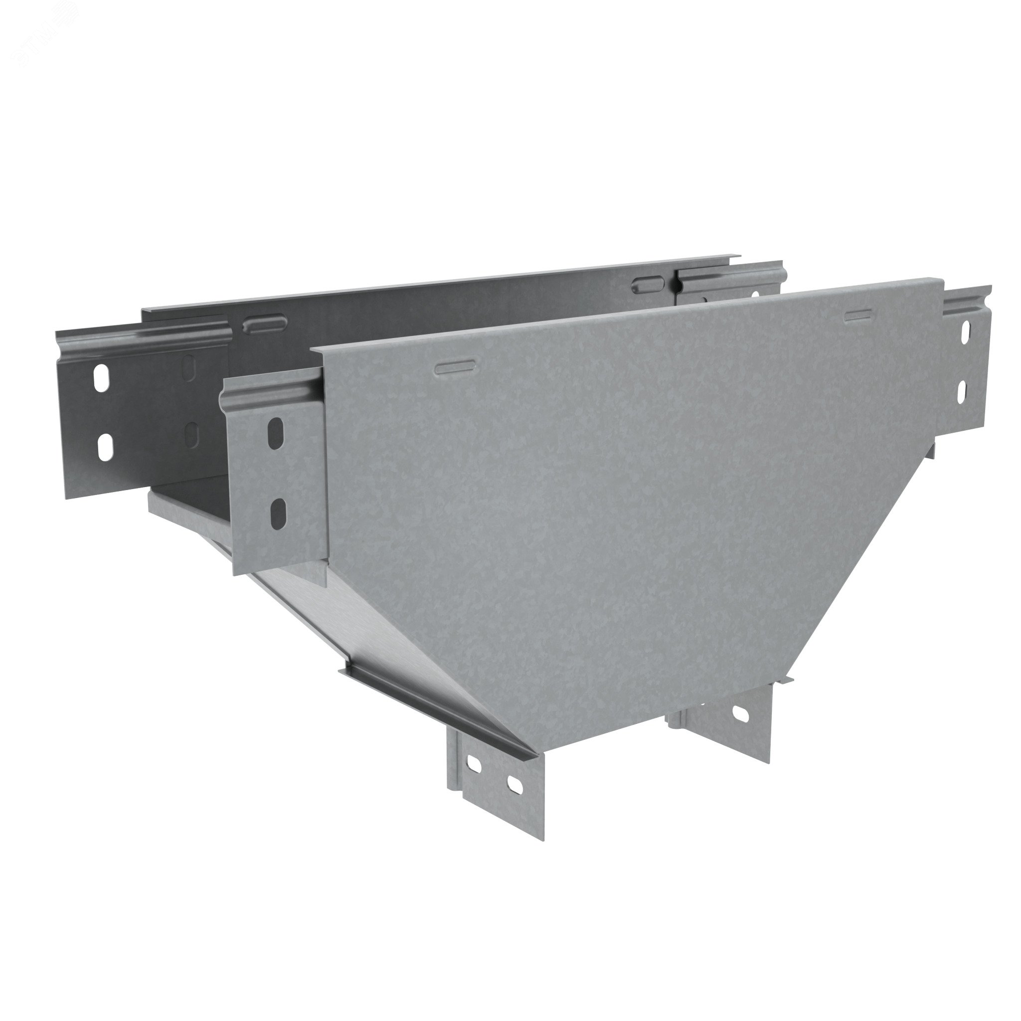 Т-отвод вертикальный вниз серии ''PLUS'' позволяет придерживаться заданных радиусов изгиба кабельной трассы при монтаже. Модификация изделия используется для отвода трассы вниз, при этом разворачивая открытую часть металлического лотка вокруг своей оси на 90 градусов. Элемент рекомендовано применять c металлическим листовым лотком этой же серии шириной 100 мм и высотой борта 80 мм. Изделие оцинковано методом горячего погружения согласно ГОСТ 9.307-89 и используется для монтажа в помещениях с высокой влажностью и низкой загрязненностью, под открытым небом и в слабокоррозийной среде, в соответствии с ГОСТ15150-69. Т-отвод легко монтируется с помощью метизов. Специальные соединительные лепестки на корпусе секции обеспечивают необходимую жёсткость конструкции стыкового узла.