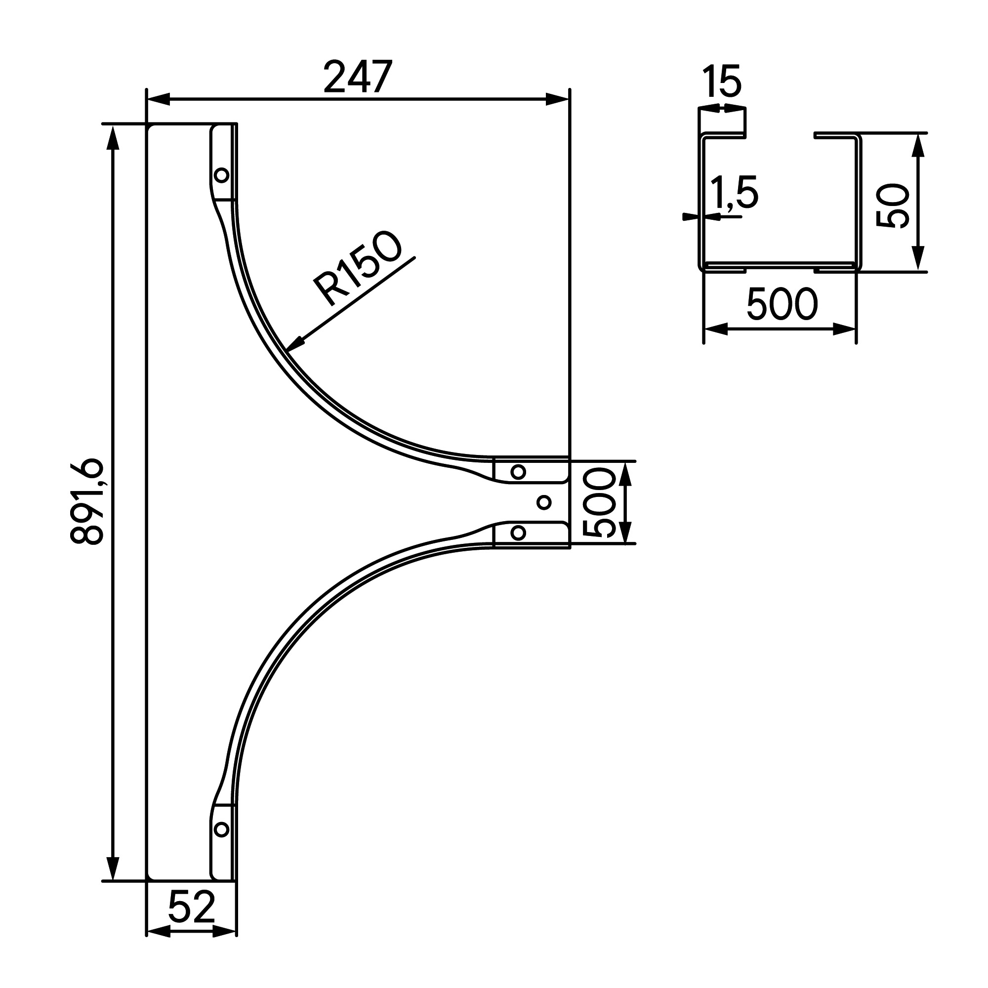 Ответвитель универсальный 50х500, 1,5 мм, в комплекте с крепежными элементами и соединительными пластинами, необходимыми для монтажа