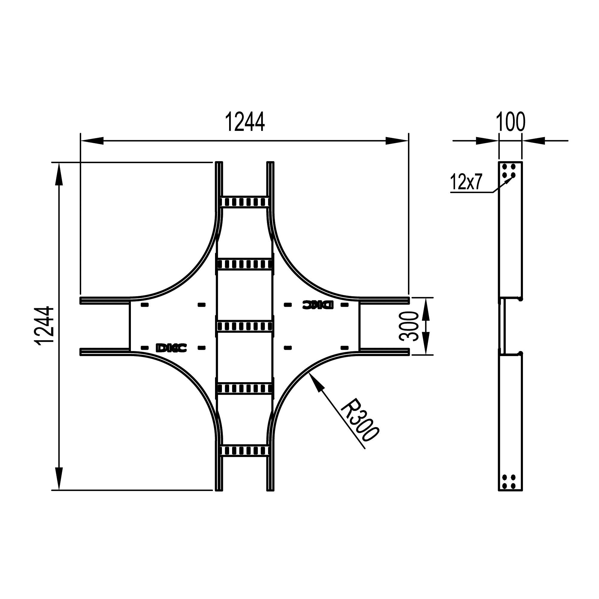 Х-ответвитель 100х300 R-300, лонжерон 1,5 мм, горячеоцинкованный, в комплекте с крепежными элементами и соединительными пластинами, необходимыми для монтажа