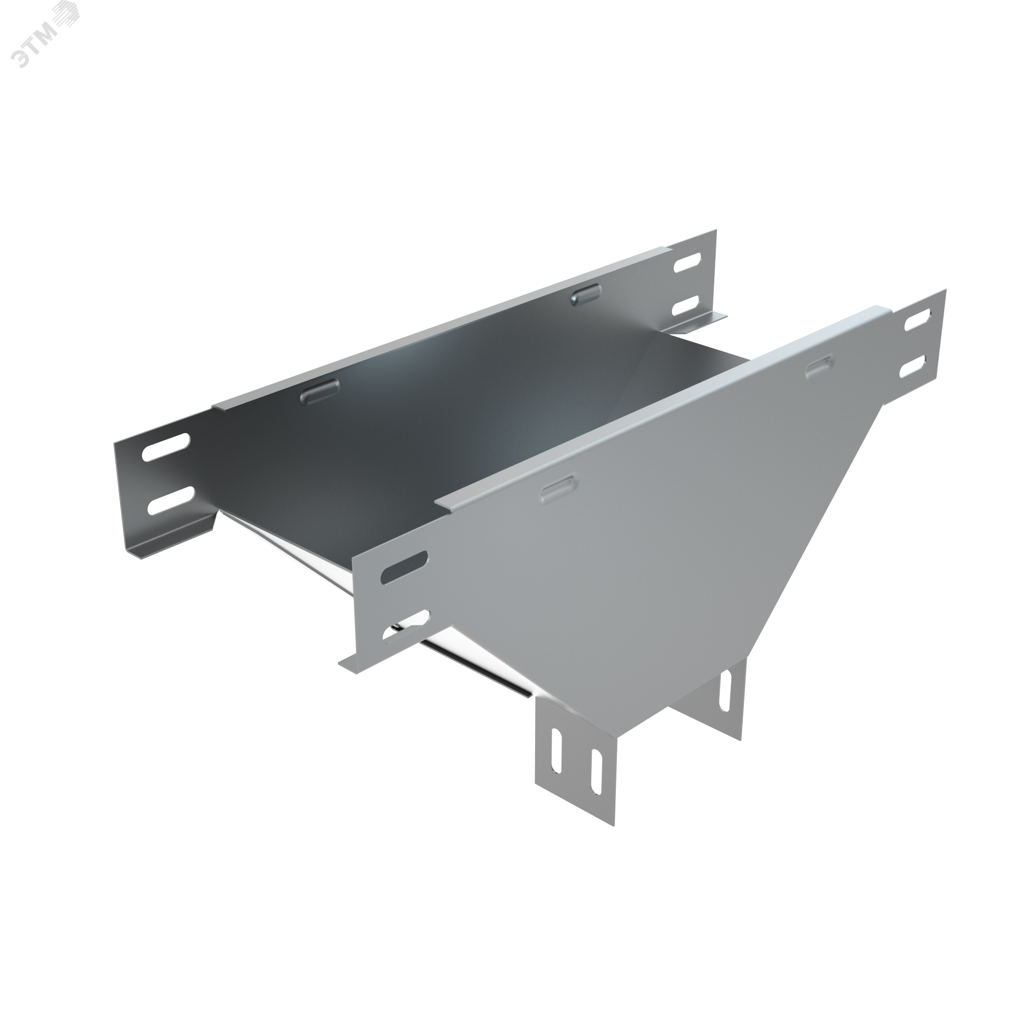 Т-ответвитель переходник вертикальный c разворотом трассы на 90 градусов БАЗОВОЙ СЕРИИ. Особенность конструкции секции в том, что нижняя часть изделия меньше исходной. Используется для отвода трассы вниз, при этом разворачивая открытую часть лотка вокруг своей оси под прямым углом. Применяется для организации плавных поворотов и перехода трассы с исходной ширины лотка 200 мм на ширину 150 мм. Изделие выполнено из стали и оцинковано по методу Сендзимира. Предназначено для применения в местах предпочтительно с сухим климатом, внутри помещений и в слабоагрессивных средах, в соответствии с ГОСТ15150-69. Элемент предупреждает повреждение кабеля при прокладке и позволяет рационально использовать внутренний объем.