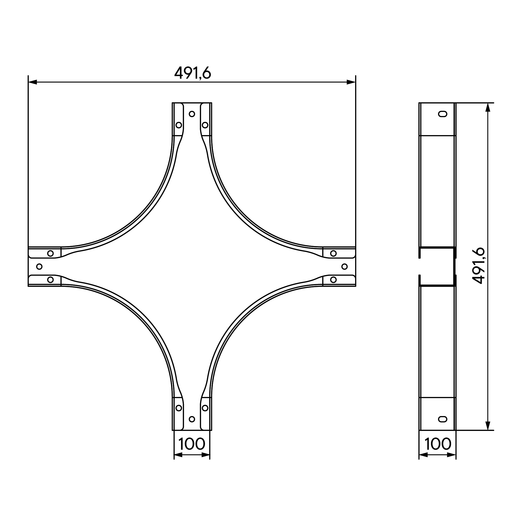 Ответвитель Х-образный 100х100, 1,5 мм, AISI 304 в комплекте с крепежными элементами и соединительными пластинами, необходимыми для монтажа