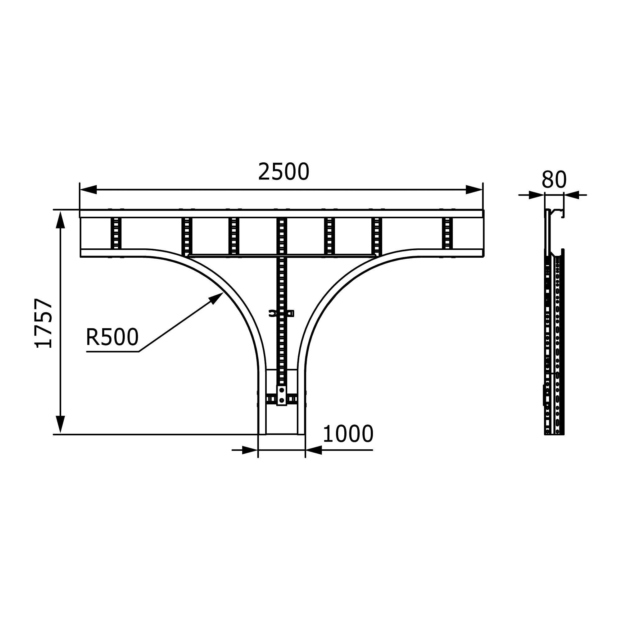 Ответвители – это аксессуары, облегчают построение кабельных трасс сложной геометрии. Они позволяют создавать ответвления кабельной трассы, построенной на основе системы тяжелых лотков "U5 Combitech". Данный аксессуар (его также называют "тройник горизонтальный") имеет Т-образную форму и применяется для организации поворотов и ответвлений в горизонтальной плоскости. Его конструктив обеспечивает плавный поворот, предупреждая повреждение кабеля при прокладке и давая возможность наиболее эффективно использовать внутренний объем аксессуара.