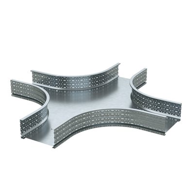 В состав системы тяжелых лотков "U5 Combitech" входят не только прямые элементы, но и специальные аксессуары, позволяющие создавать кабельные трассы сложного конструктива. С помощью крестообразного ответвителя можно как разворачивать трассу, так и организовывать ее ответвления. Листовая конструкция защищает кабель от внешних воздействий и предотвращает его провисание и повреждение. Плавные повороты Х-образного ответвителя предотвращают повреждение кабеля при прокладке и позволяют наиболее эффективно использовать внутренний объем аксессуара.