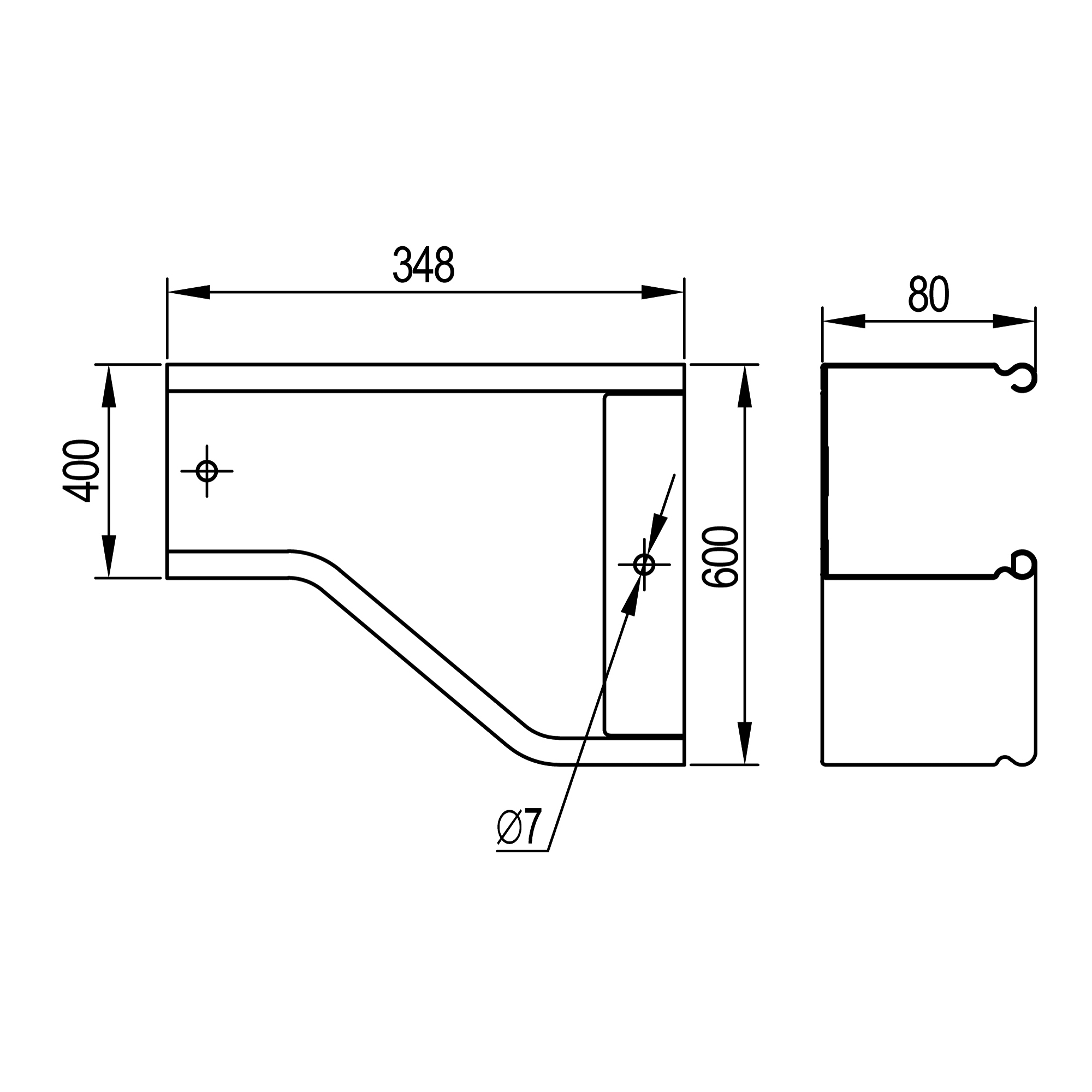 Переходник RRD правосторонний 600/400 H80 в комплекте с крепежными элементами и соединительными пластинами, необходимыми для монтажа