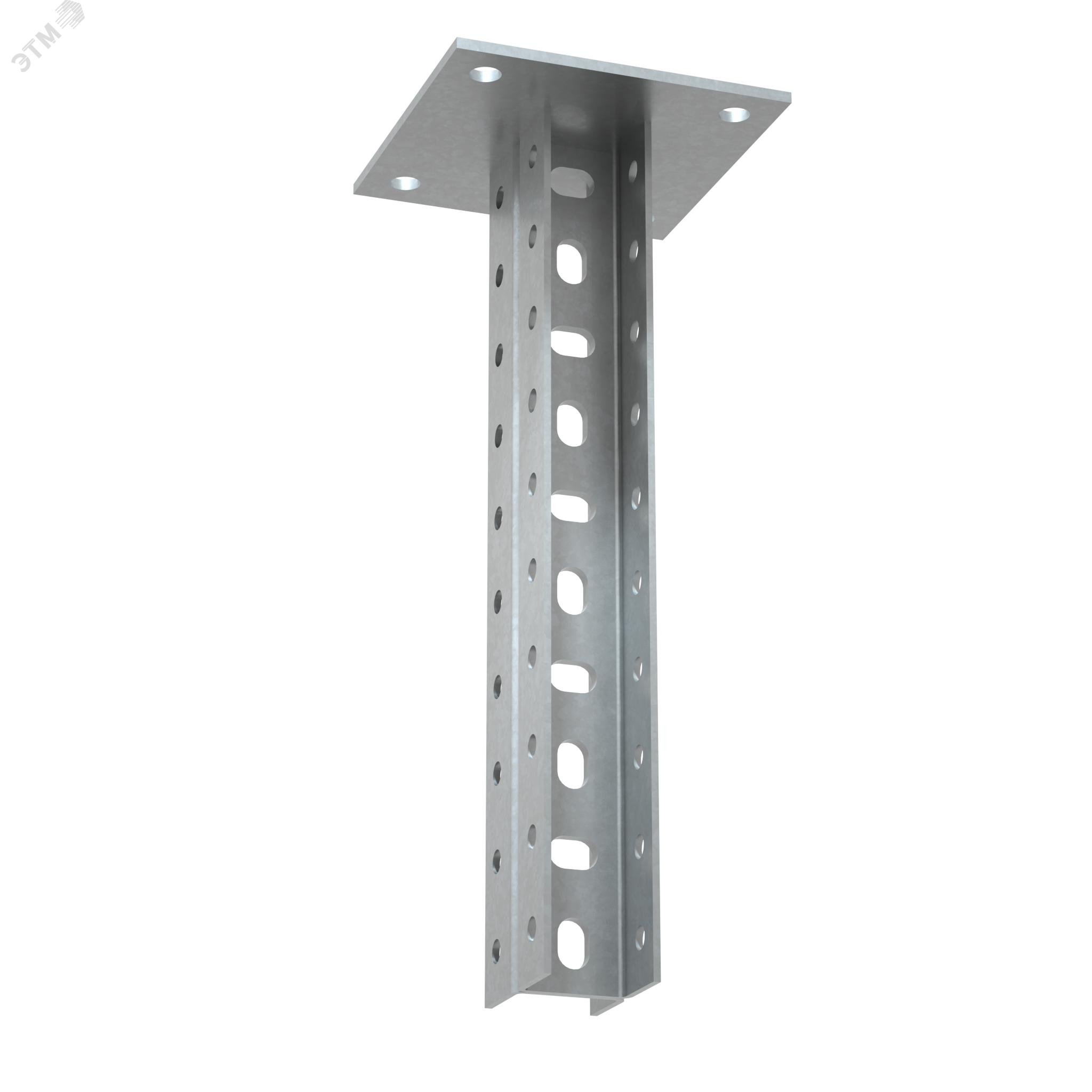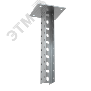 Элемент на основе двух сваренных между собой п-образных профилей с приваренным на торце основанием. Используется для крепления металлических лотков к несущей поверхности на любой высоте. Конфигурация изделия придаёт конструкции дополнительную жесткость и прочность. Универсальная потолочная стойка двойная усиленная с перфорацией применяется для потолочного или напольного крепления кабельной трассы. Изделие выполнено из стали и оцинковано электрохимическим способом. Предназначено для применения в местах предпочтительно с сухим климатом, внутри помещений и в слабоагрессивных средах, в соответствии с ГОСТ15150-69.