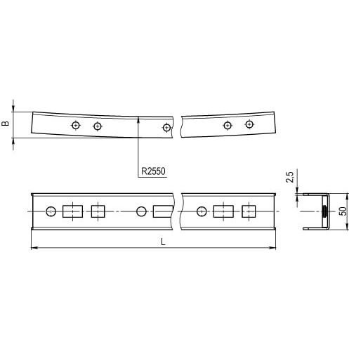 Профиль криволинейный, L1374, толщ.2,5 мм, на 11 рожков