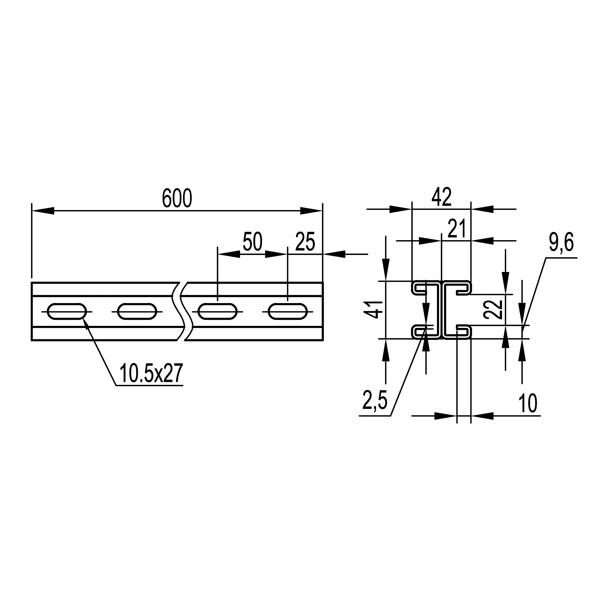 Двойной С-образный профиль 41х21, L600, толщ.2,5 мм, цинк-ламельный