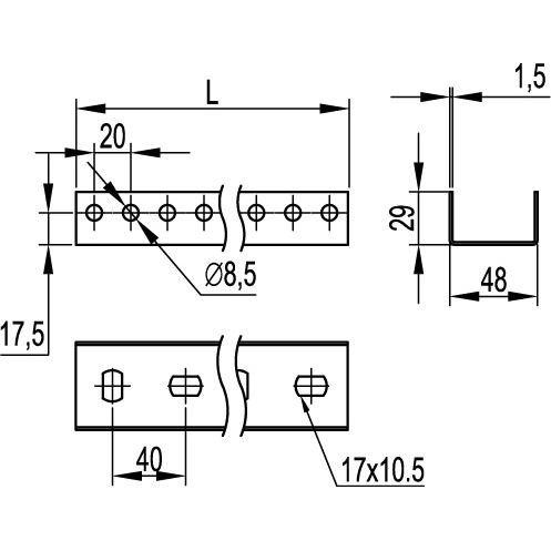 П-образный профиль PSL, L500, толщ.1,5 мм, цинк-ламельный