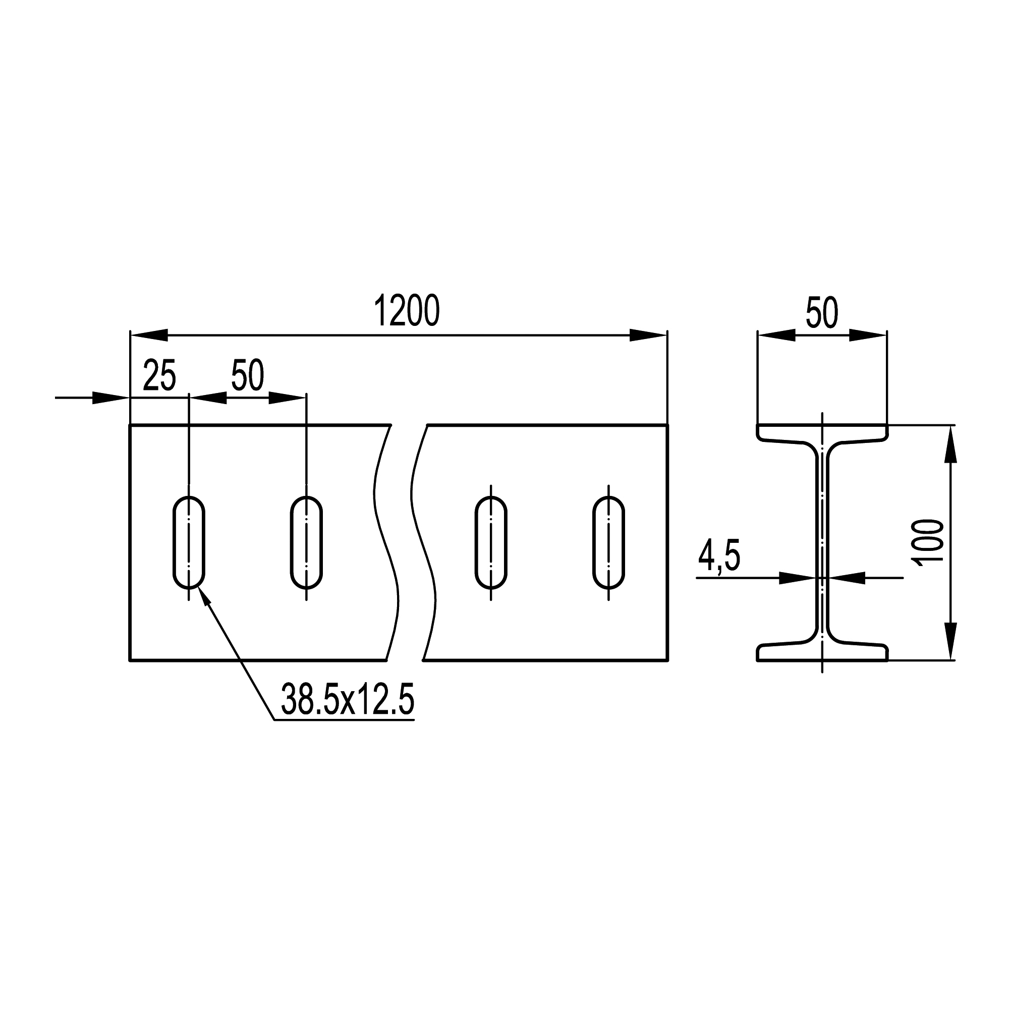I-образный профиль 50х100, L1200, толщ.4,5 мм, горячеоцинкованный