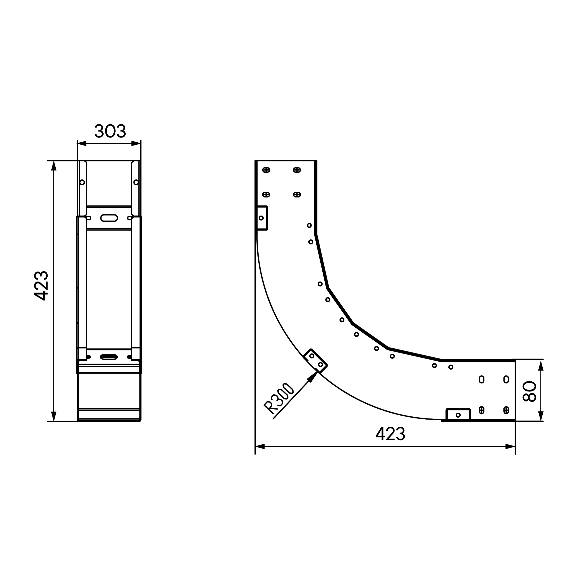 Угол вертикальный внутренний 90 градусов 80х300, R300, 1,5 мм, AISI 304