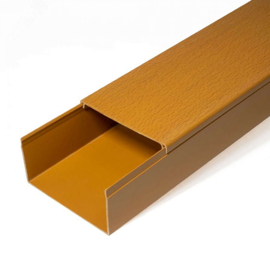 Кабельный канал из поливинилхлорида предназначен для прокладки слаботочных и силовых электрических коммуникаций открытого типа в производственных и жилых помещениях, административных зданиях, учебных, детских и медицинских учреждениях, а также при новом строительстве, ремонте и реконструкции. Кабельный канал имеет высокую коррозионную и химическую стойкость, высокую пластичность. Двойной замок надежно удерживает крышку (возможность самопроизвольного открытия крышки под действием силы тяжести исключена). Кабельный канал точно имитирует цвет дерева, создавая привлекательный внешний вид интерьера. Текстуры наносятся на кабельный канал методом термопечати, с трёх сторон - на крышке и боковых стенках (кроме больших сечений). Категория горения - ПВ0. Цветовое исполнение - бук.