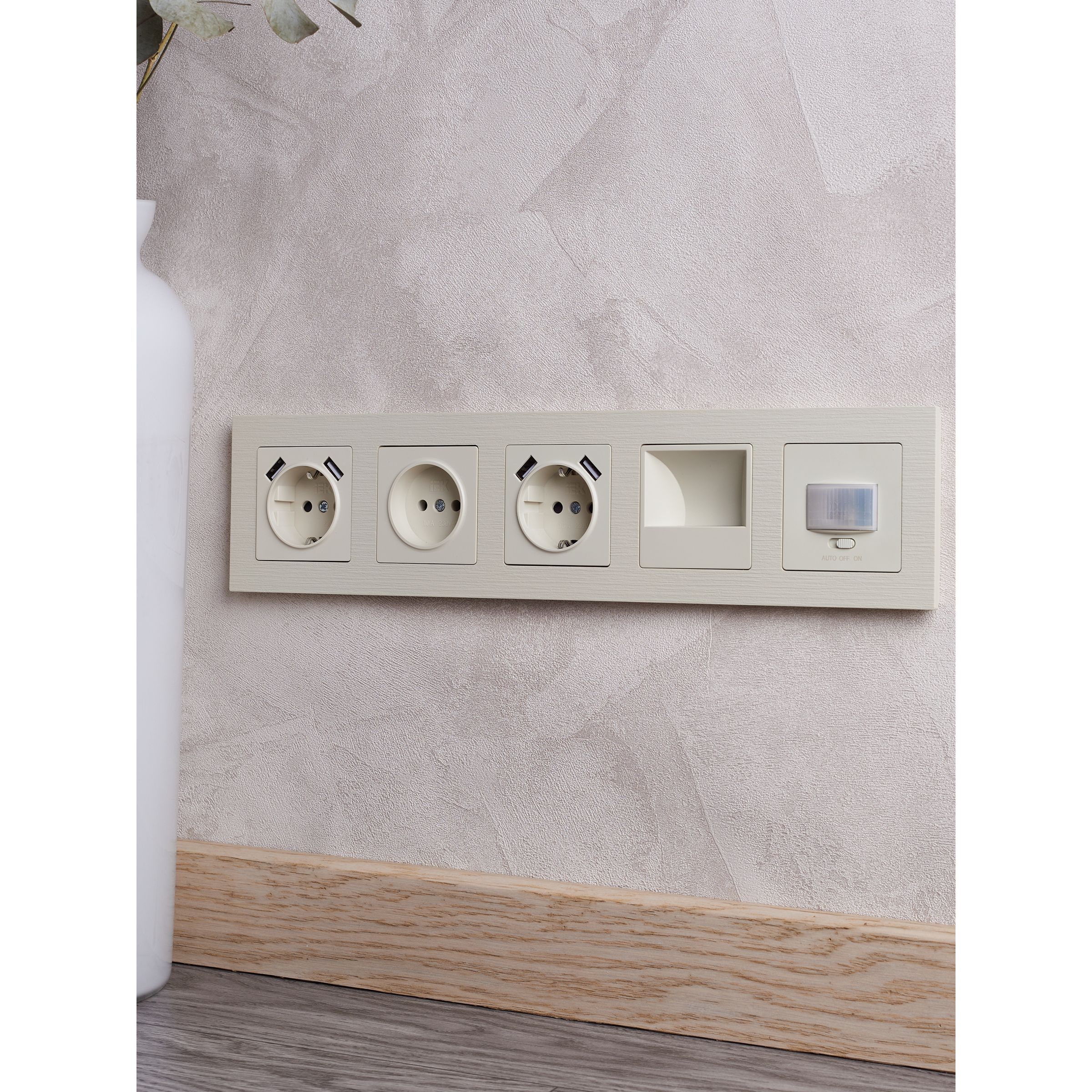 BRITE Рамка 5-местная РУ-5-Бр бежевый рифленый IEK