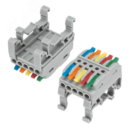 Клемма СМК 222-425D проходная 5-полюсная, с креплением на DIN-рейку (0,08-4 кв мм), серая (4 шт./уп.), REXANT