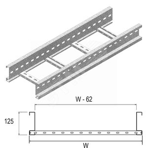 Кабельный лоток лестничного типа серии MEDIUM HEAVY, высота - 125 мм, ширина - 618 мм, длина - 3000 мм, толщина - 1,5 мм, кратность - 6м, HD - Оцинков