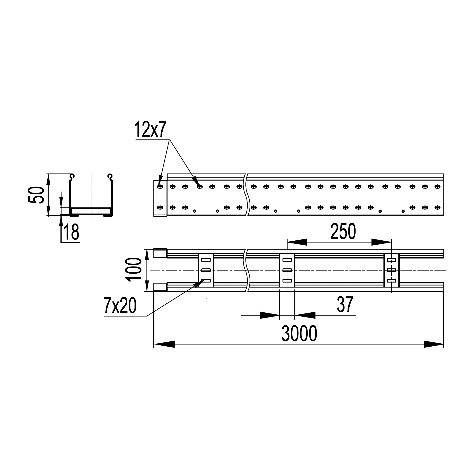 Лестничный лоток 50х100, L3000, горячий цинк