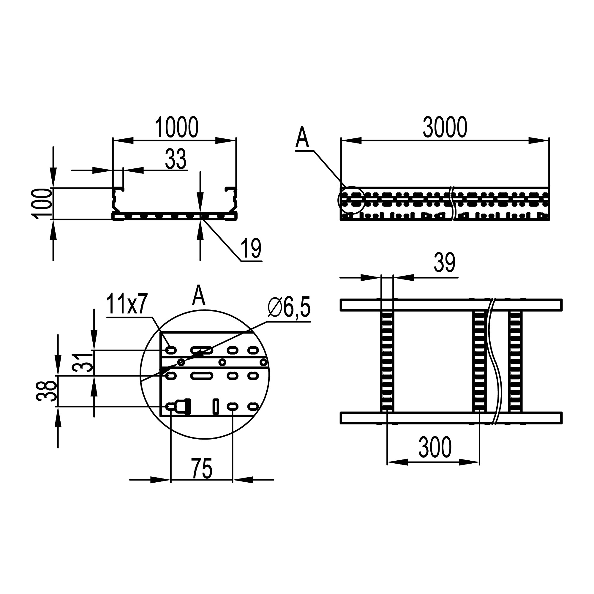 Лоток лестничный 100х1000, лонжерон 2 мм