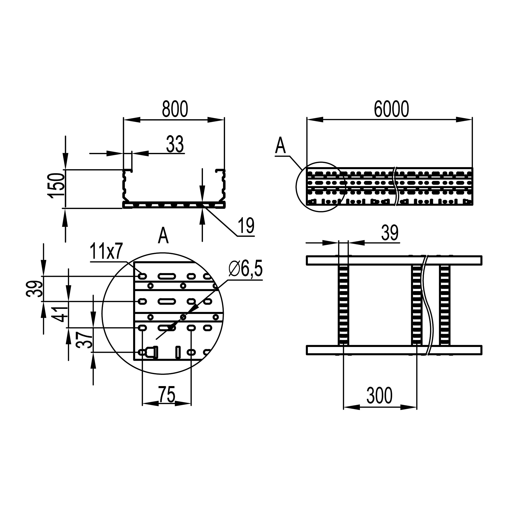 Лоток лестничный 150х800, лонжерон 2 мм, L 6 м, горячий цинк