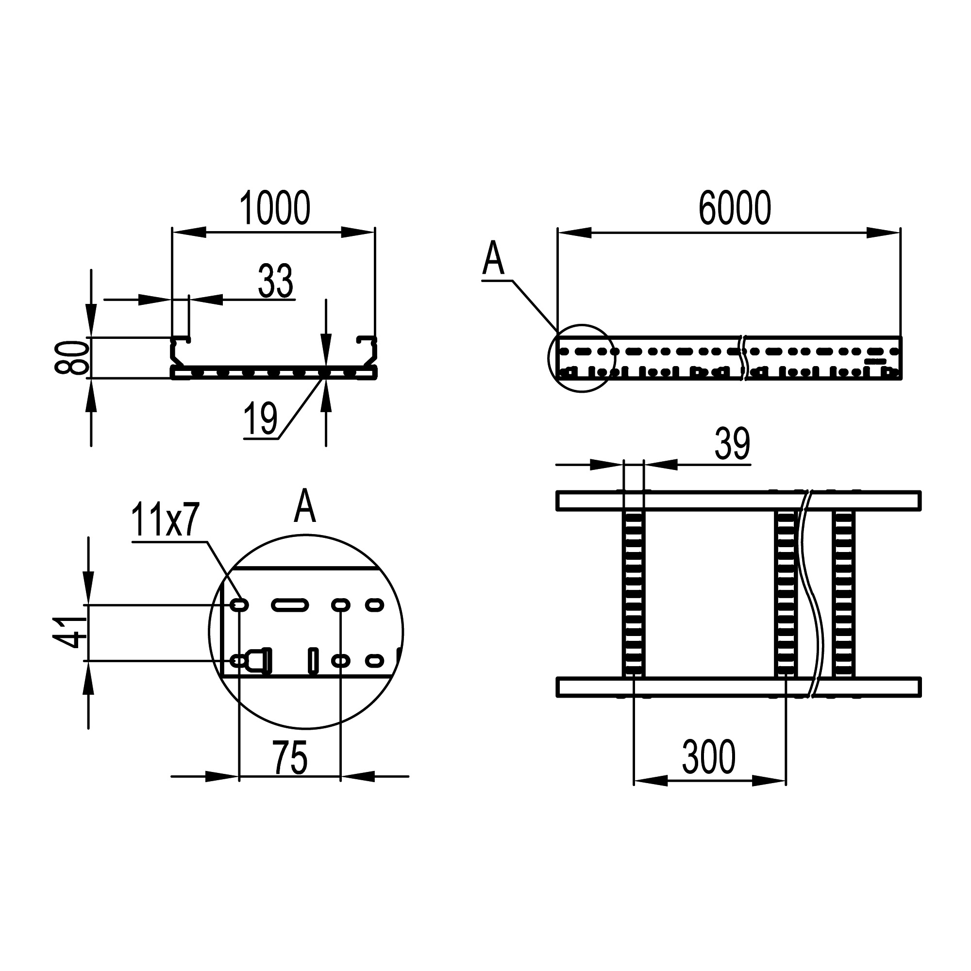 Лоток лестничный 80х1000, лонжерон 2 мм,