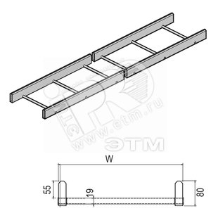 Промышленный кабельный лоток лестничного типа, высота - 80 мм, ширина - 300 мм, длина - 6000 мм, кратность - 6м, DU - Покрытие Duplex
