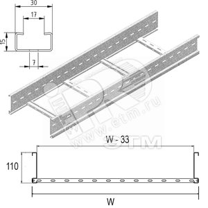 Кабельный лоток лестничного типа серии LIGHT, высота - 110 мм, ширина - 200 мм, длина - 3000 мм, толщина - 1,25 мм, кратность - 3м, PE - Сталь с порош