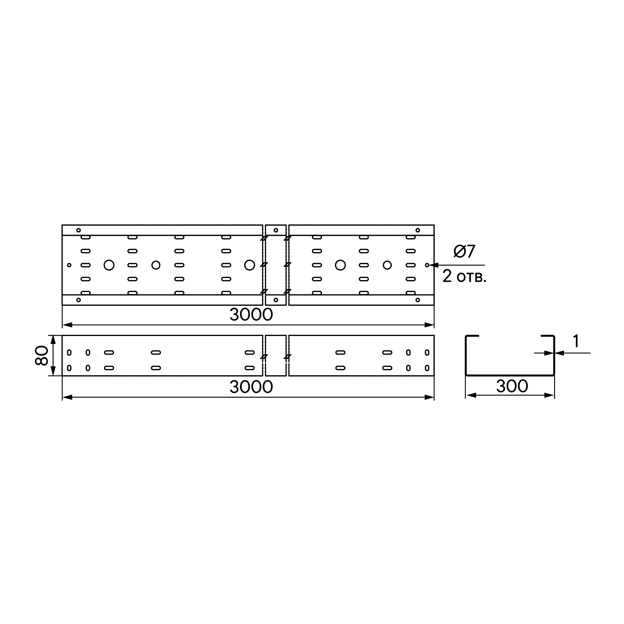 Лоток перфорированный 80x300х3000, 1,0 мм, INOX304