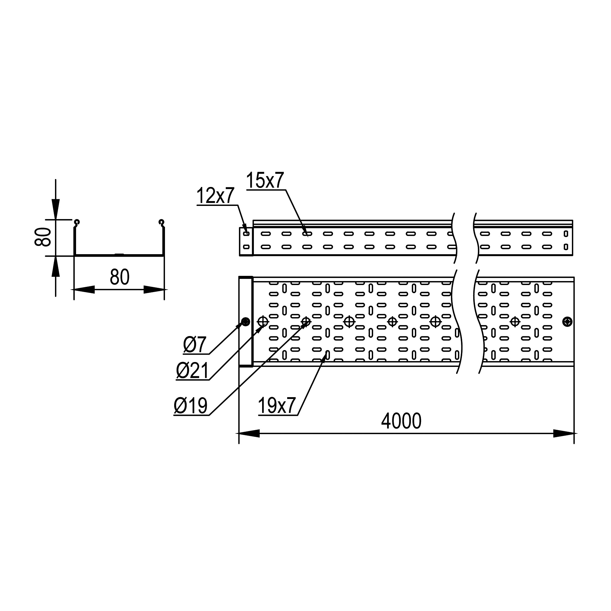 Лоток перфорированный 80х80х4000, 2,0 мм, цинк-ламельный