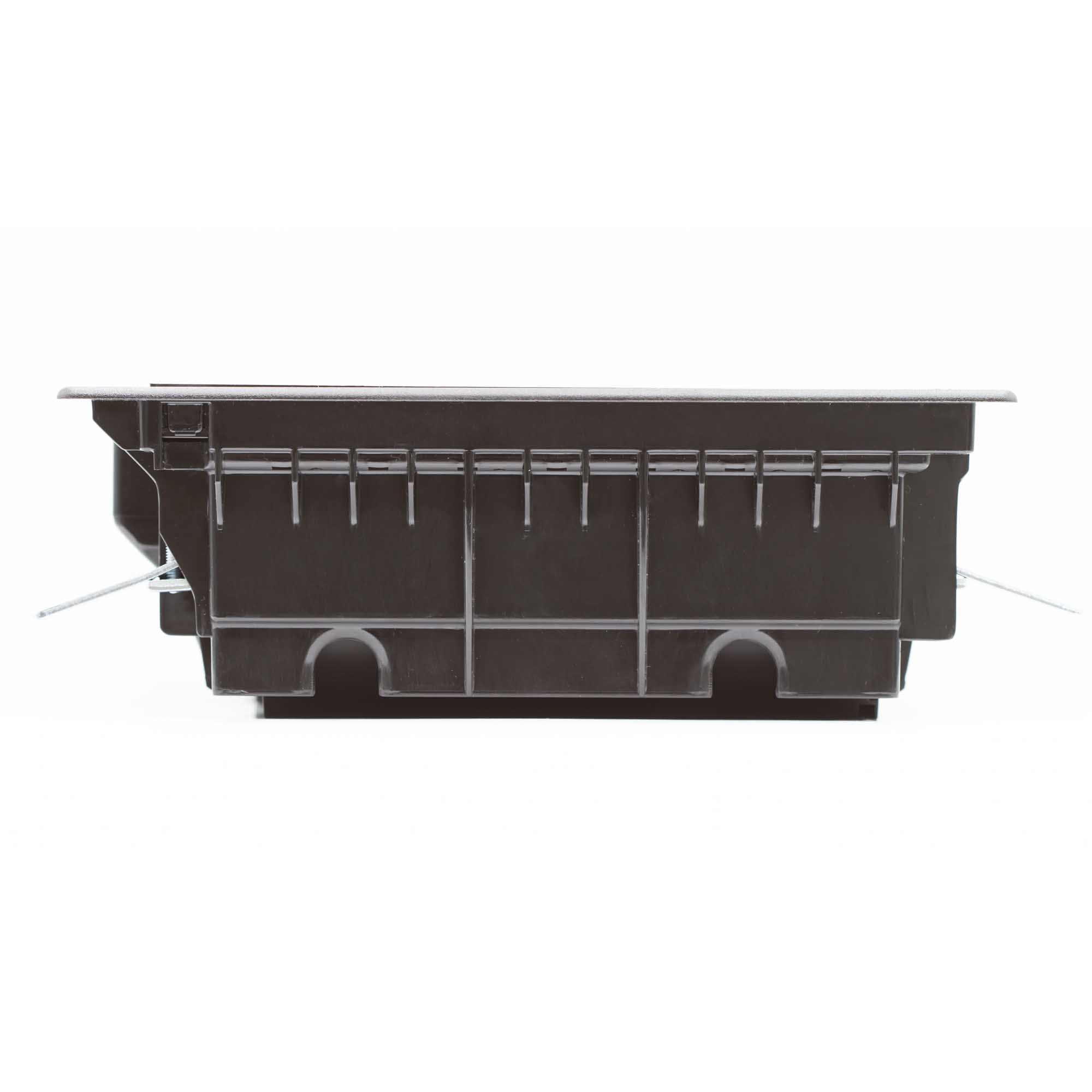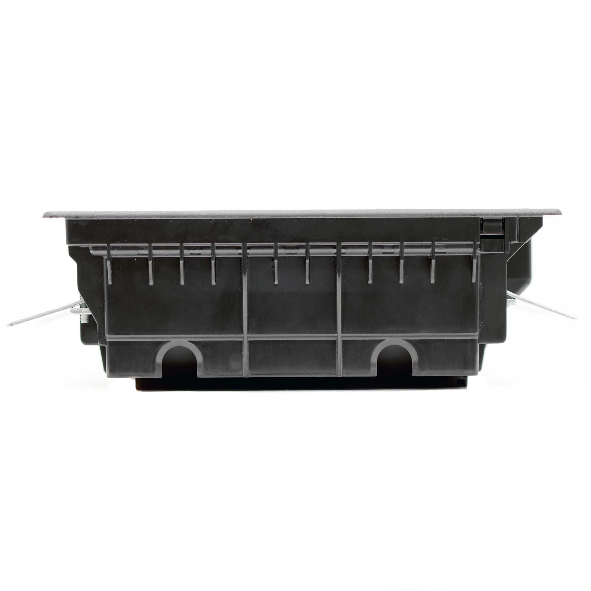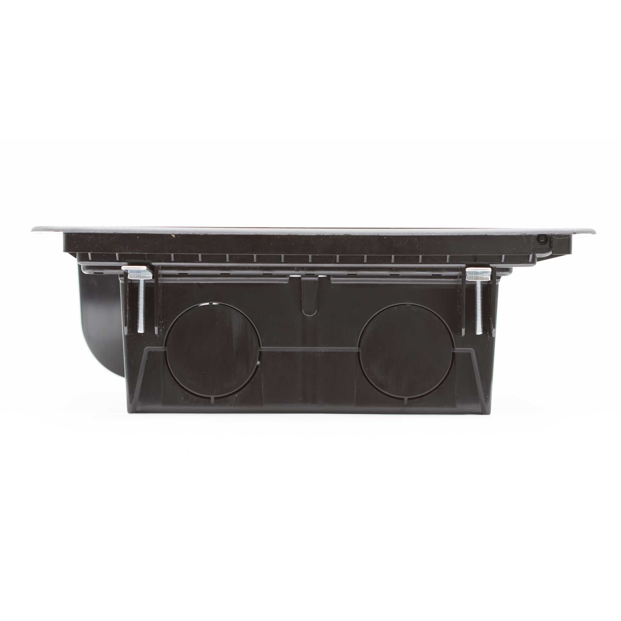 Назначение: организация рабочих мест в открытом интерьере. Устанавливается в фальшполах (толщина плит 20-40 мм), отверстие в полу 345х255 мм, закрепляется невыпадающими фиксаторами. Характеристики: глубина от уровня пола − 92 мм, высота над уровнем пола (толщина рамки): 3 мм, ширина рамки (ободка по периметру) сверху – 20 мм, снизу – 12 мм, крышка лючка утоплена на 7,5 мм для напольного покрытия, крышка со стальным листом, нагрузка: на малую площадь − 1000Н, на большую площадь - 2000Н (ГОСТ 61084-2-2-2022), допустимая нагрузка на крышку 450 кг (ГОСТ 61084-2-2-2007), открывается на угол 110°; В лючок возможна установка ЭУИ "Avanti","Brava", "Viva", стандарта 45х45 мм с 2 сторон; трубы вводятся диаметром до 40 мм по 2 шт. с 2 сторон. Комплект поставки указан в инструкции. Цвет - черный.