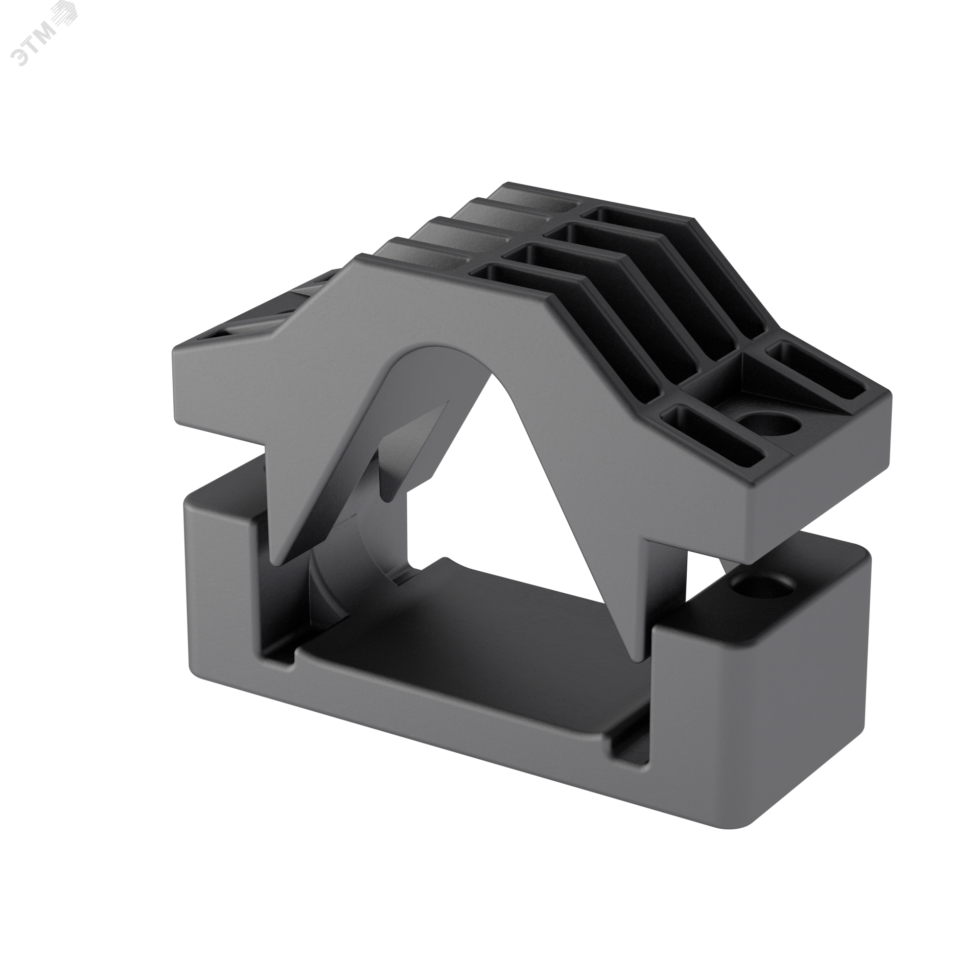 Универсальное кабельное крепление из полиамида армированного стекловолокном предназначено для фиксации кабеля в треугольник. Изделие сконструировано таким образом, что при максимальных диаметрах кабеля для данного вида креплений верхняя и нижняя части находятся в постоянном зацеплении, что снижает изгибающие нагрузки на крепежный элемент и повышает тем самым прочность конструкции к механическим нагрузкам при возникновении токов КЗ. Изделие одинаково эффективно к атмосферным воздействиям, воздействию масел и других нефтепродуктов. Механическая стойкость к динамическим нагрузкам - 10 000 H.