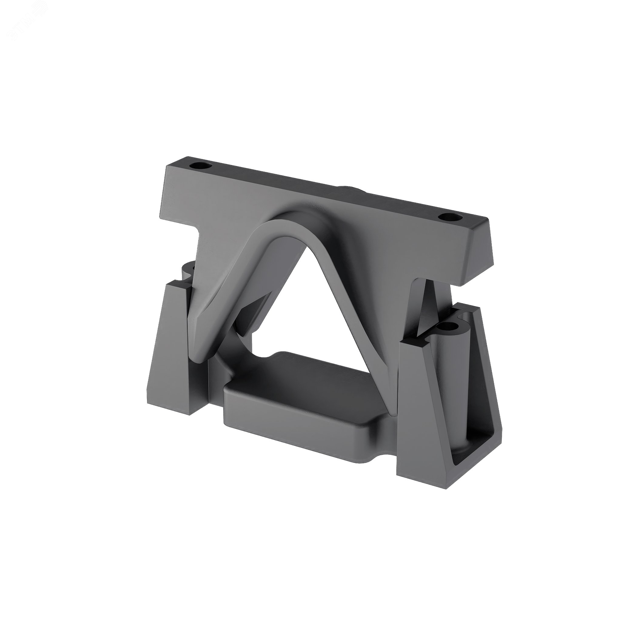 Универсальное кабельное крепление из полиамида армированного стекловолокном предназначено для фиксации кабеля в треугольник. Изделие сконструировано таким образом, что при максимальных диаметрах кабеля для данного вида креплений верхняя и нижняя части находятся в постоянном зацеплении, что снижает изгибающие нагрузки на крепежный элемент и повышает тем самым прочность конструкции к механическим нагрузкам при возникновении токов КЗ. Изделие одинаково эффективно к атмосферным воздействиям, воздействию масел и других нефтепродуктов. Механическая стойкость к динамическим нагрузкам - 10 000 H.