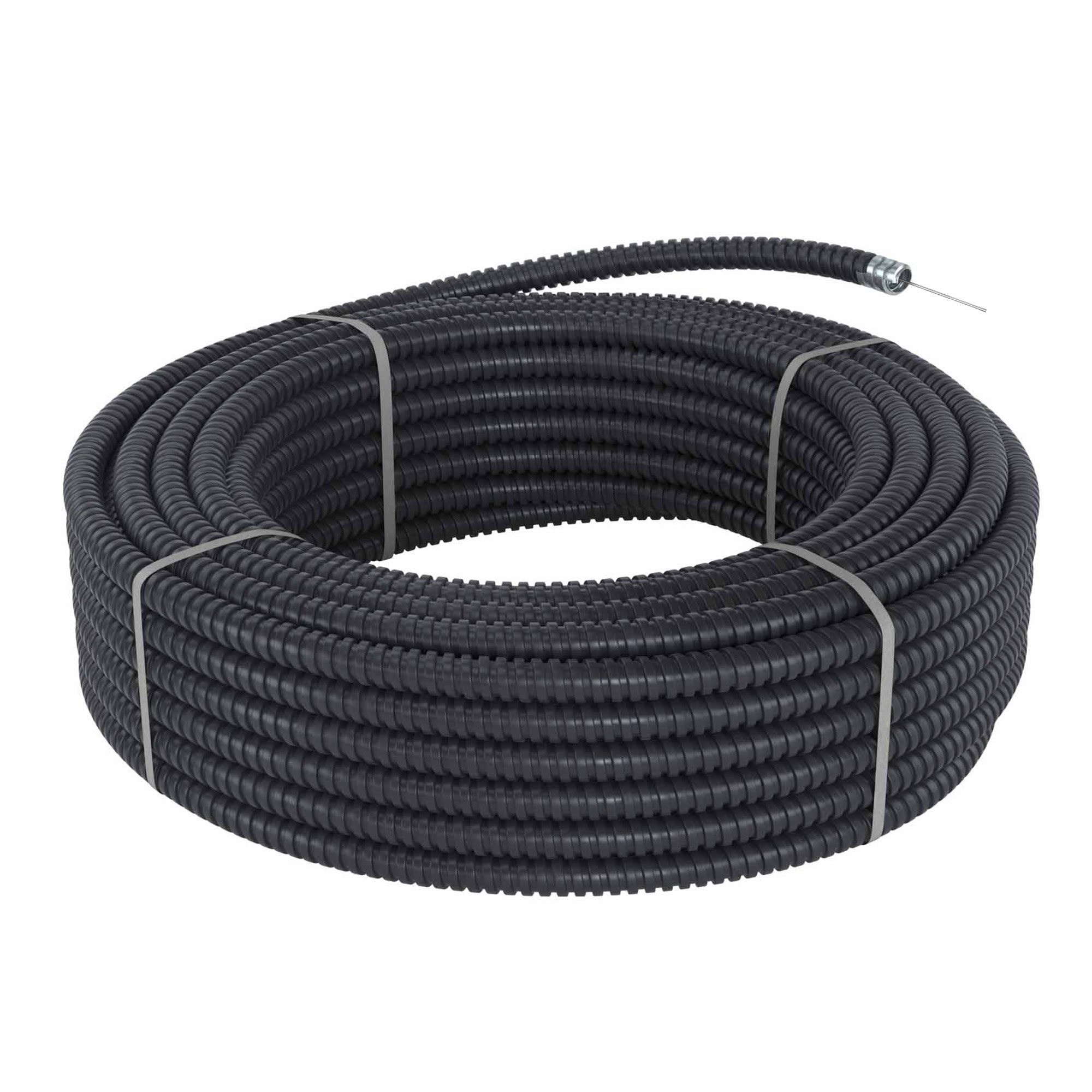 Металлорукав DN 10мм в герметичной ПВХ изоляции, Dвн 10,0 мм, Dнар 14,0, с протяжкой, 50 м, цвет чёрный