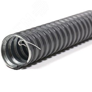 Герметичный не поддерживающий горения металлорукав в ПВХ изоляции МРПИ НГ с протяжкой 22 мм предназначен для защиты от механических повреждений электротехнических кабелей, линий связи, а также других проводниковых коммуникаций. Состоит из негерметичного металлорукава из оцинкованной стали, на внешнюю сторону которого нанесено не поддерживающее горение пиливинилхлоридное покрытие. ПВХ оболочка создаёт водонепроницаемость, стойкость к вредному воздействию окружающей среды, значительно увеличивает прочность на разрыв, защищает от поражения электрическим током. Стальная проволока (протяжка или зонд) внутри металлорукава, обеспечивает быструю и удобную протяжку кабеля при монтаже без дополнительных приспособлений.