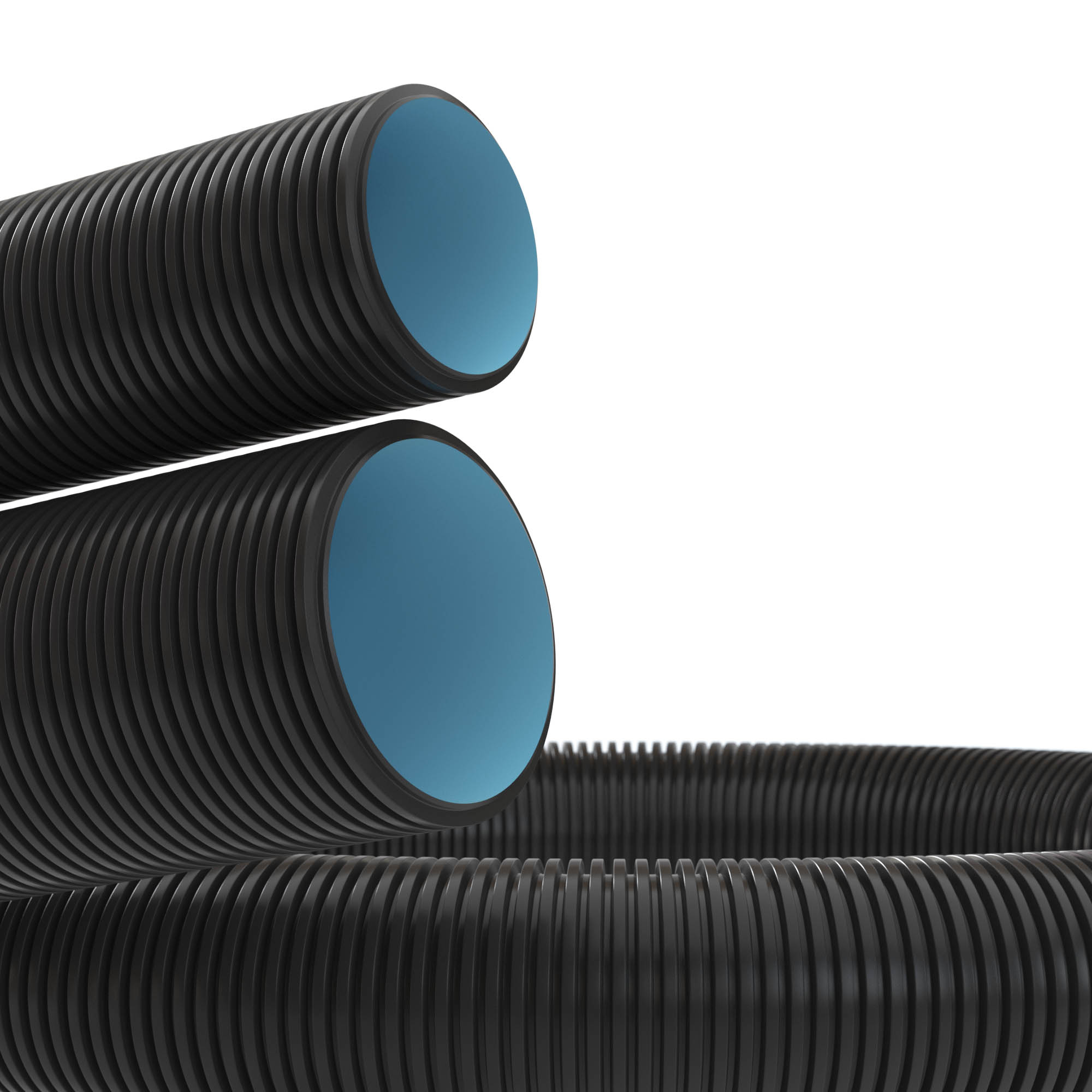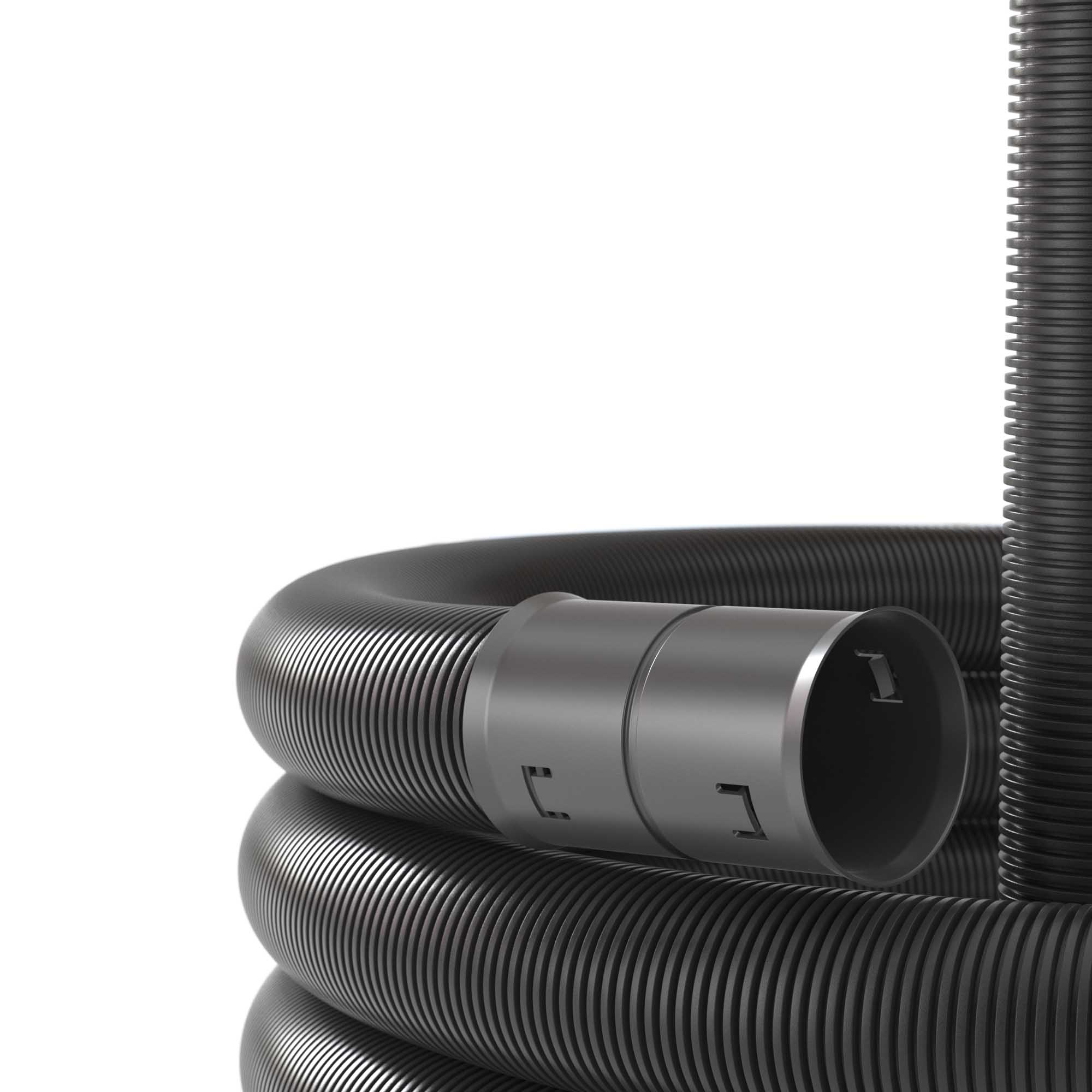 Двустенная труба ПНД гибкая для открытой прокладки д.63мм, SN13, 530Н, УФ, с протяжкой, в бухте 100м, цвет черный
