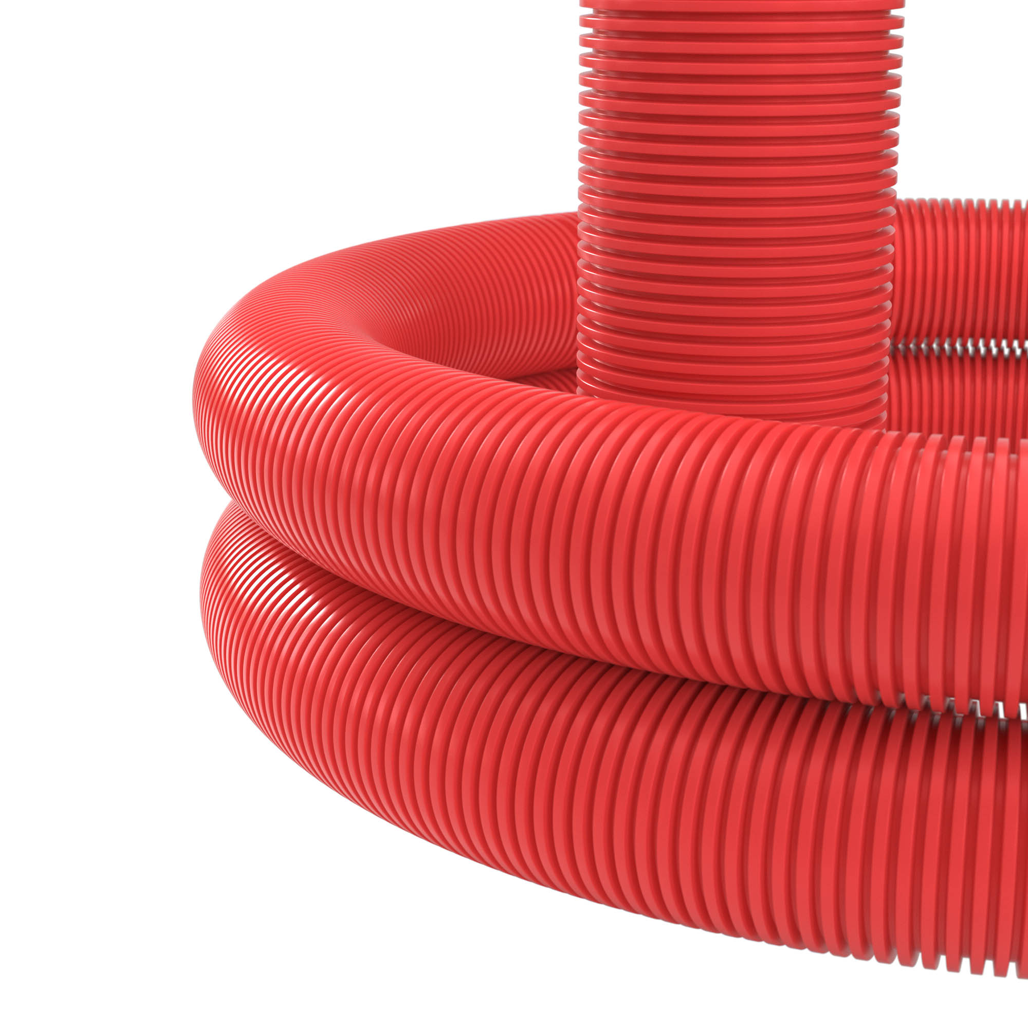 Усиленная двустенная труба ПНД гибкая для кабельной канализации д.40мм с протяжкой, SN28, 640Н, в бухте 100м, цвет красный