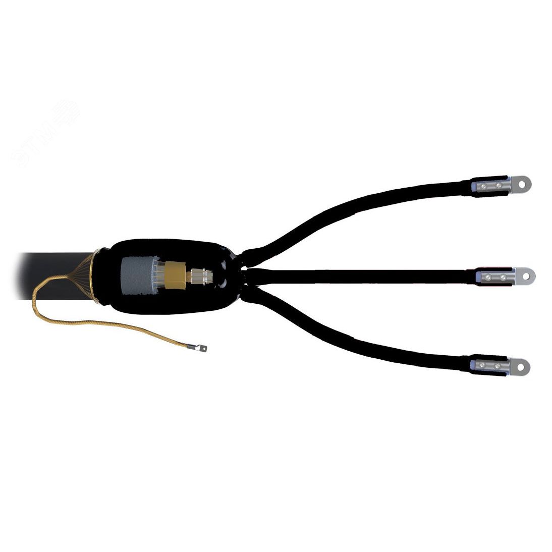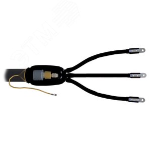 Муфта предназначена для оконцевания трехжильного кабеля с броней с изоляцией из сшитого полиэтилена и экраном из медных проволок на напряжение до 10кВ для внутренней установки. В составе муфты применяются трубки стресс-контроля снижающие риск пробоя изоляции на срезе полупроводящего слоя и специальный герметик со свойствами выравнивания напряженности электрического поля. Использование изолирующей антитрекинговой трубки снижает риск пробоя по поверхности изоляции. Термоплавкий клей, нанесенный на внутреннюю поверхность термоусаживаемых трубок, обеспечивает полную герметичность муфты после монтажа. В комплект муфты входят алюминиевые наконечники с контактными винтами со срывающимися головками. Для улучшения электропроводящих свойств на контактные поверхности болтов нанесена специальная смазка. Болтовые наконечники предусмотрены для монтажа как на алюминиевую, так и на медную жилы.