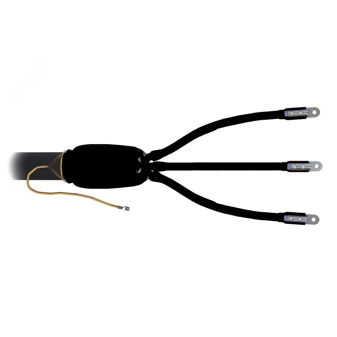 Муфта предназначена для оконцевания трехжильного кабеля без брони с изоляцией из сшитого полиэтилена и экраном из медных проволок на напряжение до 10кВ для внутренней установки. В составе муфты применяются трубки стресс-контроля снижающие риск пробоя изоляции на срезе полупроводящего слоя и специальный герметик со свойствами выравнивания напряженности электрического поля. Использование изолирующей антитрекинговой трубки снижает риск пробоя по поверхности изоляции. Термоплавкий клей, нанесенный на внутреннюю поверхность термоусаживаемых трубок, обеспечивает полную герметичность муфты после монтажа.