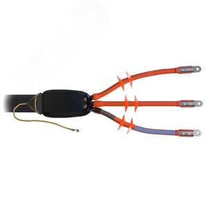 Муфта предназначена для оконцевания трехжильного кабеля без брони с изоляцией из сшитого полиэтилена и экраном из медных проволок на напряжение до 10кВ для наружной установки. В составе муфты применяются трубки стресс-контроля снижающие риск пробоя изоляции на срезе полупроводящего слоя и специальный герметик со свойствами выравнивания напряженности электрического поля. Использование изолирующей антитрекинговой трубки и изолятора снижает риск пробоя по поверхности изоляции. Термоплавкий клей, нанесенный на внутреннюю поверхность термоусаживаемых трубок, обеспечивает полную герметичность муфты после монтажа.