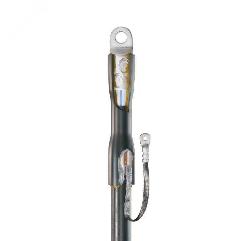 Предназначены для герметичного оконцевания кабелей и проводов - с броней. с пластмассовой изоляцией (ПВХ/СПЭ) на напряжение до 1 кВ. Комплект состоит из болтового соединителя с рядным расположением болтов и термоусаживаемой манжеты с клеевым слоем. Каждый комплект является мультиразмерным и рассчитан на расширенный диапазон сечений кабеля. Крепление на жиле осуществляется методом завинчивания болтов со срывной головкой. Болтовые головки срываются при достижении установленного момента, обеспечивающего оптимальные механические и электрические свойства контактного соединения. Термоусаживаемые трубки с клеевым слоем и с коэффициентом усадки до 4 -1 обеспечивают полную герметизацию и изоляцию соединений. Эксцентриковое отверстие под кабельную жилу в корпусе наконечника. Термоусадочные трубки устойчивы к ультрафиолетовому излучению и погодно-климатическим условиям. При усадке клеевой слой расплавляется, заполняет все неровности микрорельефа и обеспечивает полную герметичность соединений.