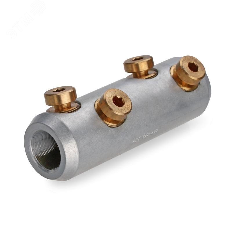 Предназначены для соединения кабельных жил напряжением до 35 кВ. Центрально симмтричное отверстие под кабельную жилу в корпусе соединителя способствует снижению потерь в контактном соединении. Торцевые фаски для сглаживания напряженности электрического поля, Расположение осей болтов в разных плоскостях под углом друг к другу обеспечивает большое пятно контакта жилы с корпусом соединителя и тем самым способствует снижению потерь в контактном соединении. Каждый болтовой соединитель является мультиразмерным и рассчитан на диапазон сечений кабеля. Материал корпуса - специальный алюминиевый сплав. Материал болтов - медный сплав. Крепление на жиле осуществляется методом завинчивания болтов с внутренним шестигранником со срывной головкой. Соединители 'КВТ' имеют внутреннюю конструктивную перегородку, определяющую глубину захода кабельной жилы. Диапазоны применения болтовых наконечников и соединителей совпадают с диапазонами термоусаживаемых кабельных муфт.